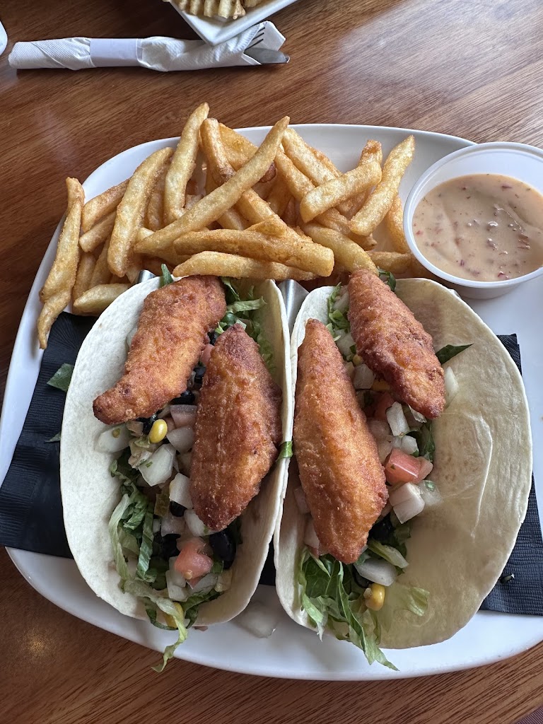 Beautiful patio that allows dogs. Every staff member I encountered was more than friendly and welcoming. I had magic mahi tacos. Their chili ranch is absolutely delicious!