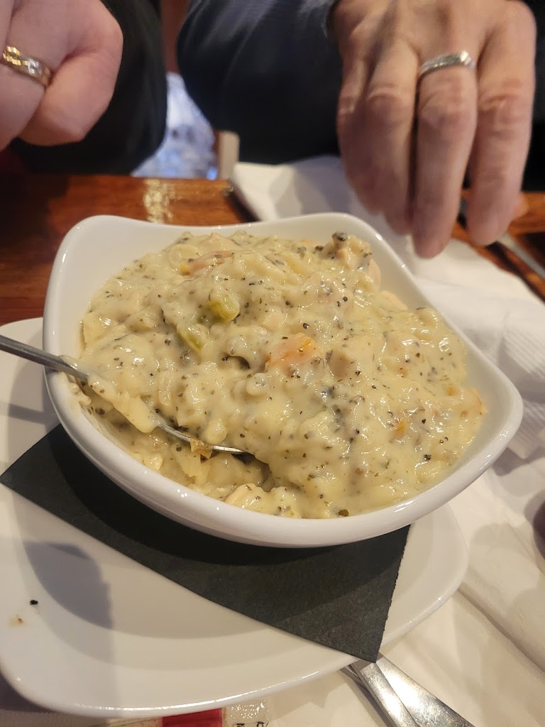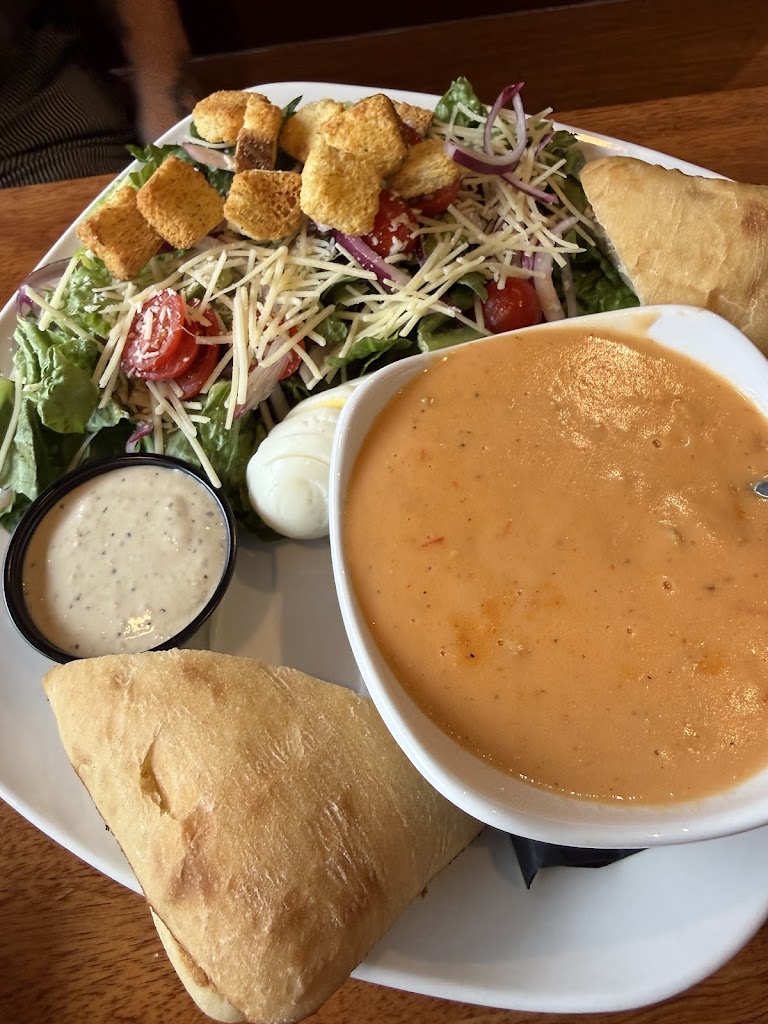 The largest salad bar included with every meal. I am happy at lunch to do a soup and salad. The food never disappoints! Do not attempt to eat the desserts alone.