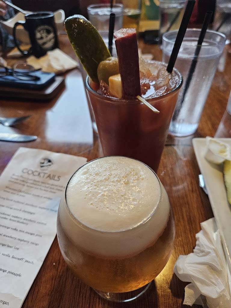 Food outstanding everything is fresh Bloody Mary's come with a free beer.service was great .
