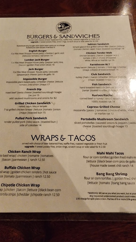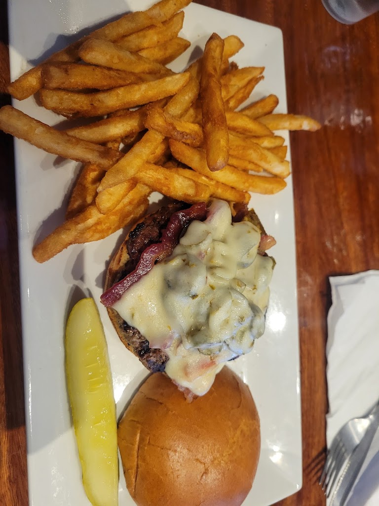 Based on my visit on 5/12/25: The casual dining/bar atmosphere was very calm and cool, with indoor and outdoor seating available. The service was great. The food quality, presentation and portions were quite impressive! Our chicken wings, fries, Reuben sandwich and Cobb salad was all five-star delicious!