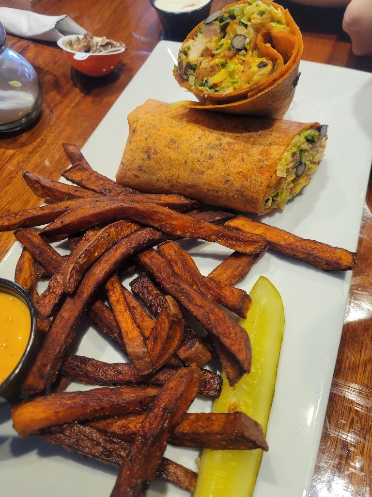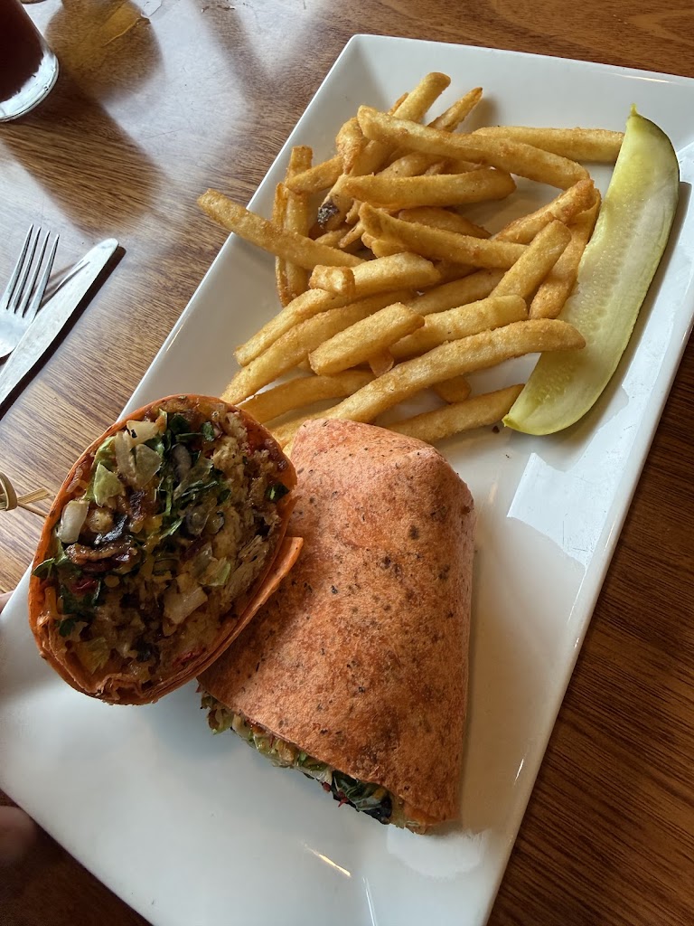 Delicious and generous food and wonderful, attentive service. Great date night choice and so close to the Mable Tainter Theater for a show afterwards. My wrap was delicious, as well as the chicken wild rice soup, and my husband’s Chicken Southwest bowl.