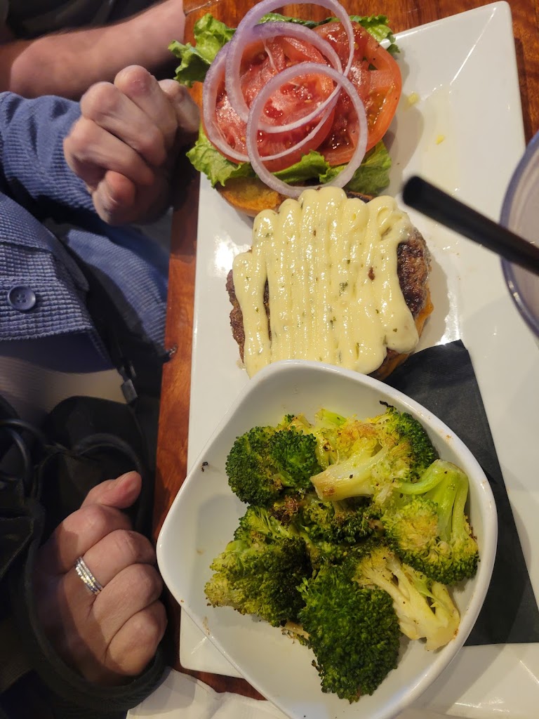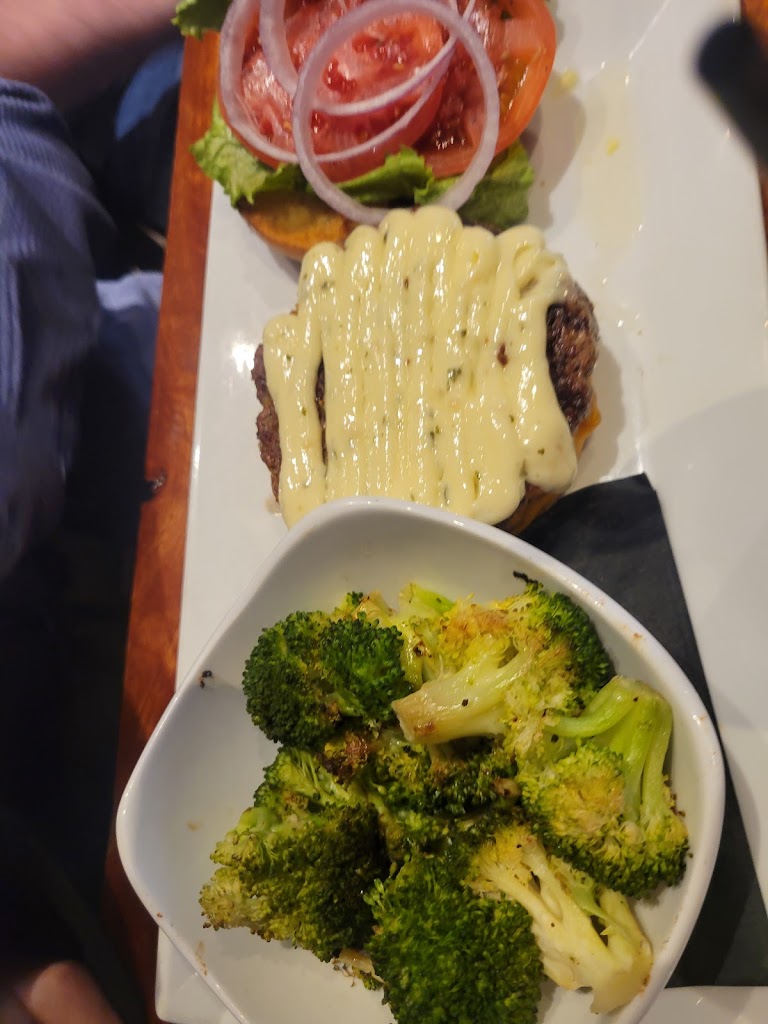 The food was excellent (burgers were huge). It was really quiet when we walked in (Sunday around 1:00) and then a kids baseball team walked in. The staff handled it very well and food still came out quickly for all.