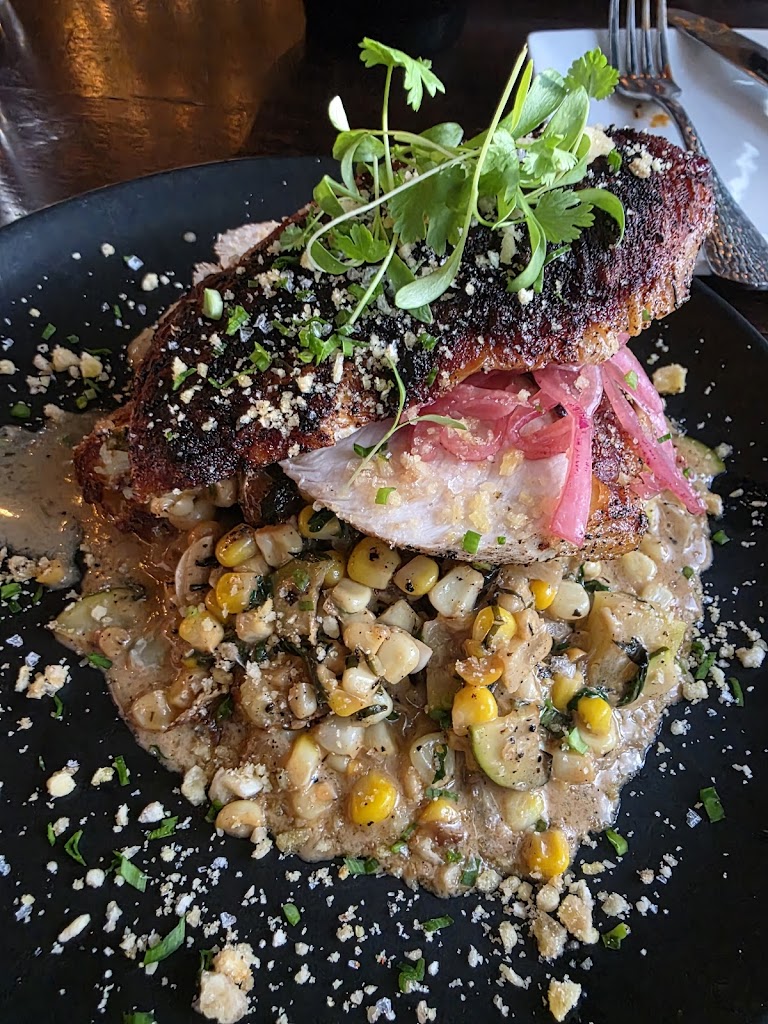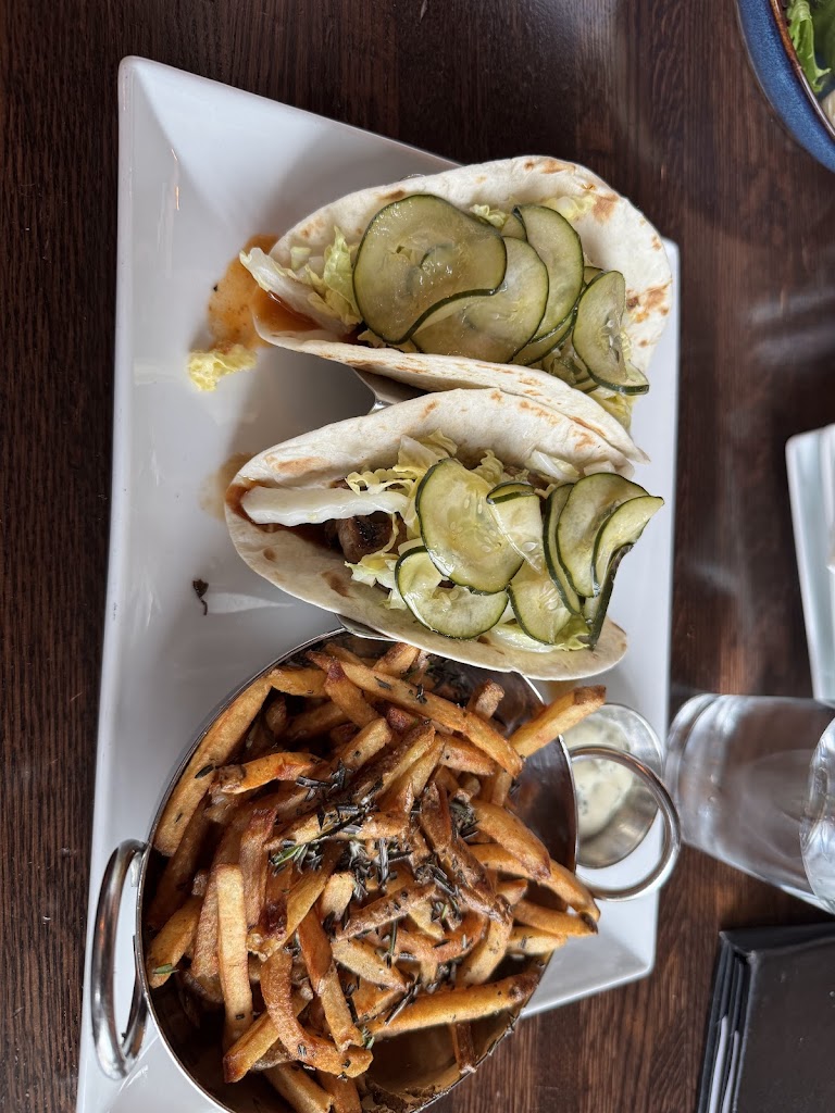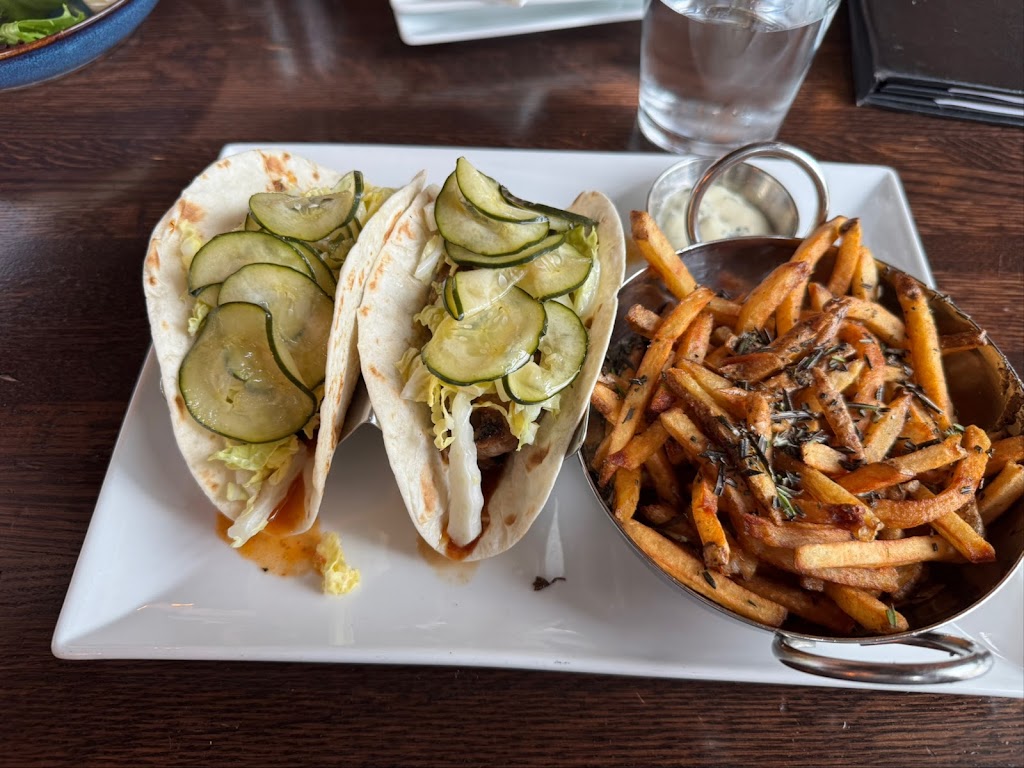 Two of us had dinner on a Friday night. The only downfall was that it was really, really loud inside. So loud that we could barely hear the server or each other across the small table. My husband had the Misoyaki Cod which he enjoyed even tho it was just a tad over cooked. It looked beautiful. I had the Mahi Mahi Tacos and rosemary fries which were both good. Even though the tacos have guacamole, they don’t have a Mexican flavor profile. Mild but flavorful. The menu is varied and I would come back again and try to find a quieter time.