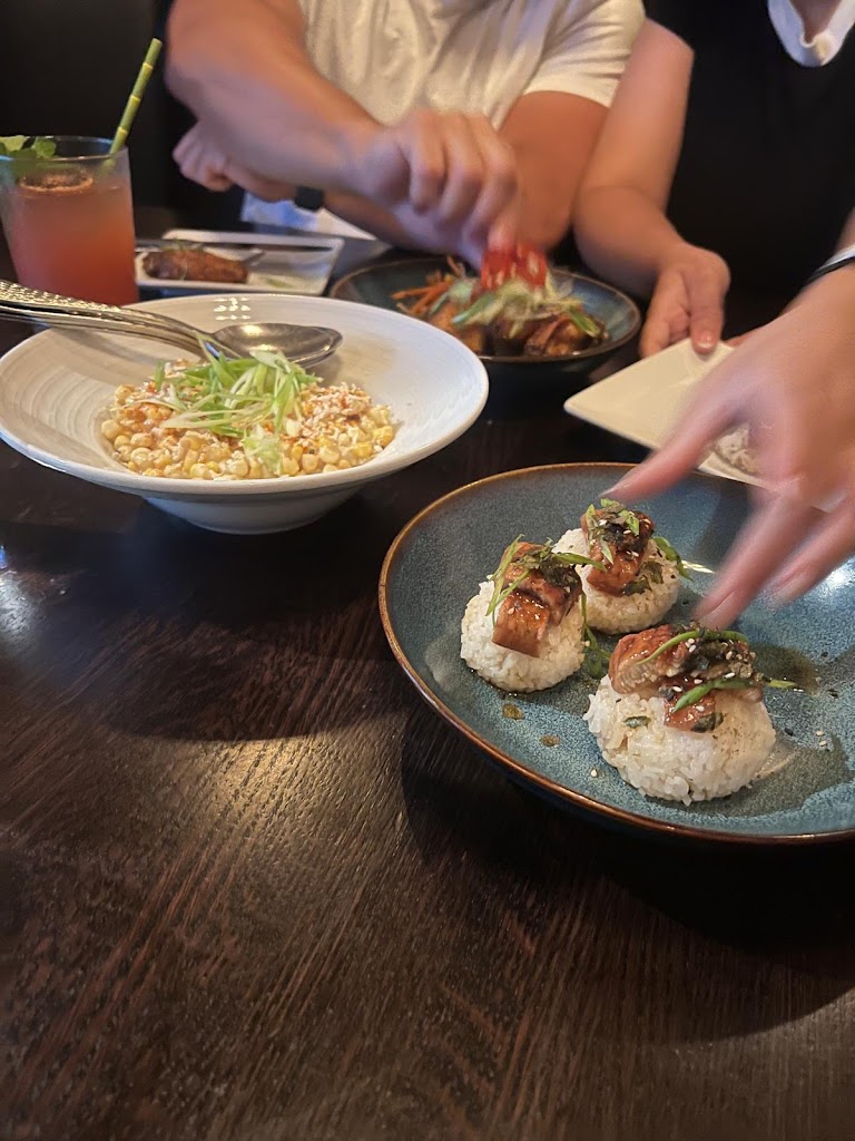 The corn mesquite was plain and lacked salt, pepper, and cotija cheese. The wings were really good — probably the only thing worth ordering. The eel appetizer was just okay. The vegetable bowl was also bland. Who’s making the rice here? You need to do better! Add flavor!