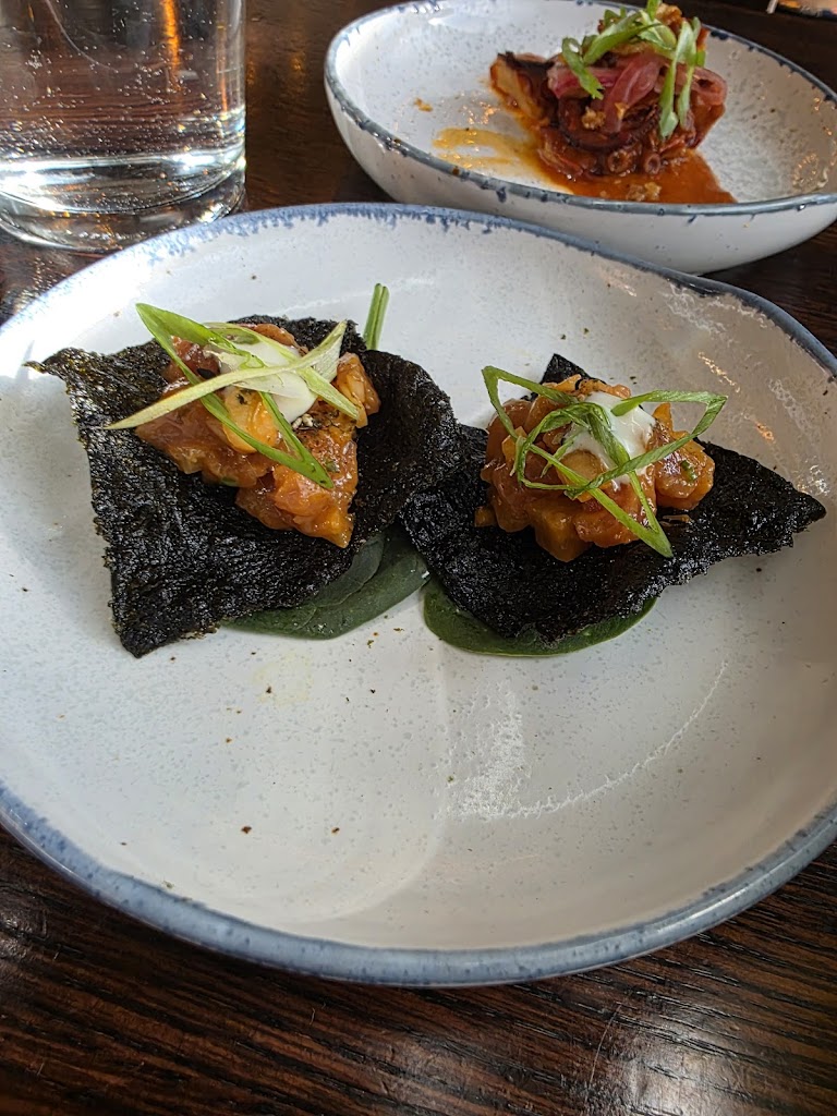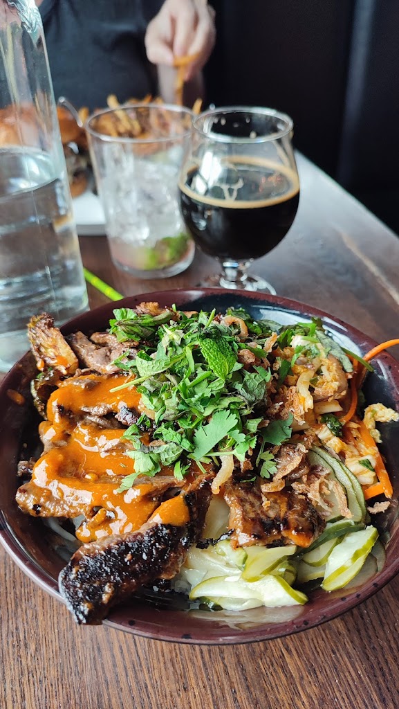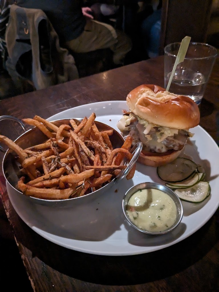 Service was exceptional, very attentive and friendly. menu cocktails are generous and creative. The Korean wings are excellent. The burger was tasty but difficult to handle, Moe bun than necessary. rosemary fries, excellent. Worthy of a secondary visit.