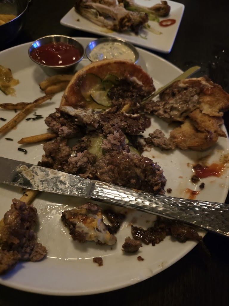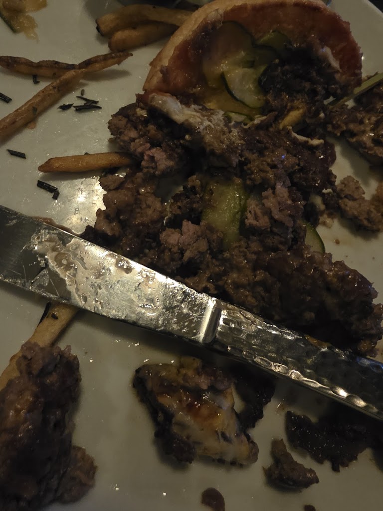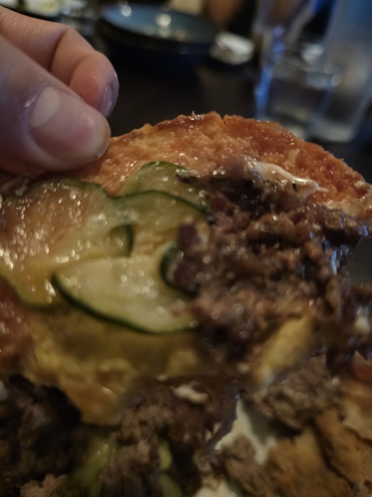 The first time we tried the smashed burger, it was soggy — but we thought that was because we ordered it to-go and ate it at home. Today, we ordered it again at the restaurant, and it was even worse. The bun was extremely soggy and soaking wet, and the meat crumbled into ground beef. I’m not sure how they’re making the patties, but they were terrible. The flavor was awful because it was drowned in sauce.