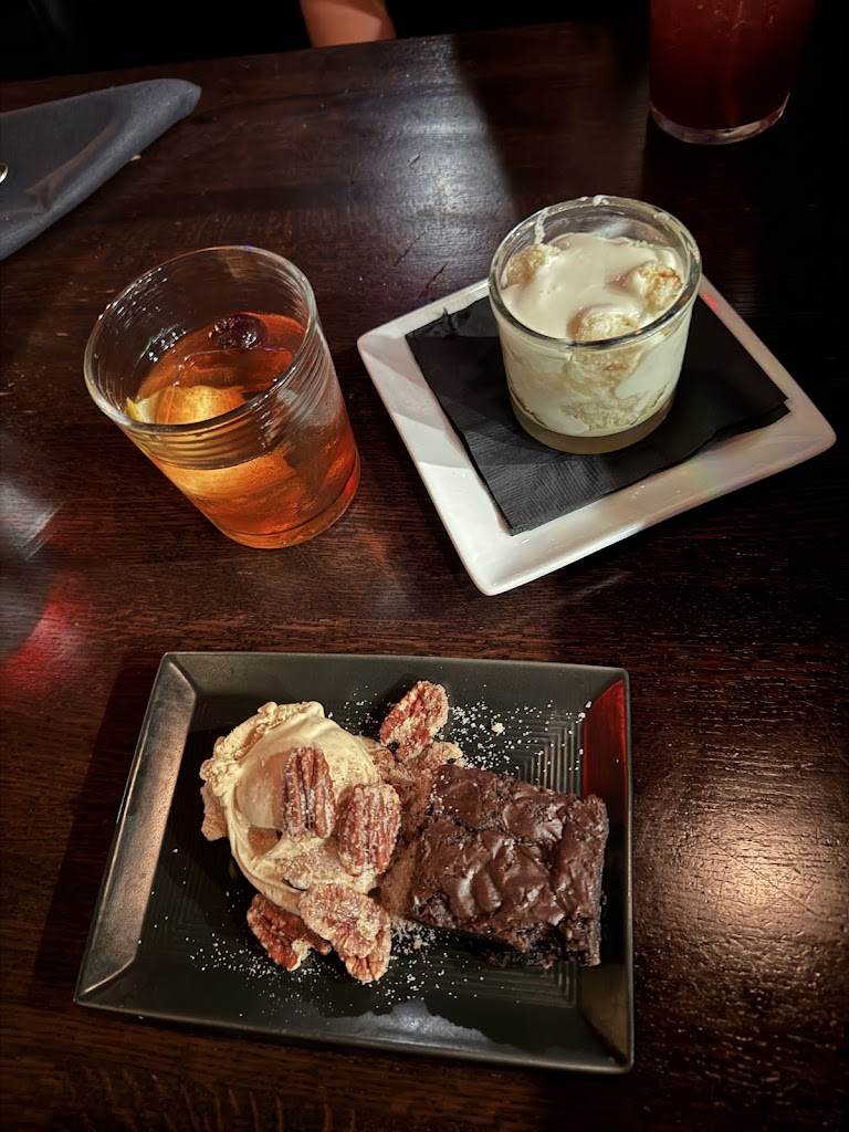I settled on the mahi tacos, and they were delicious. My fiancé chose the walleye which was delicious as well. I also had a glass of Chardonnay and he had an Old Fashioned cocktail.