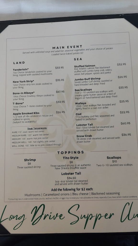 Not a traditional supper club atmosphere, but the menu hits the mark. Nice place to grab some shrimp or steak with an open soup and salad bar.