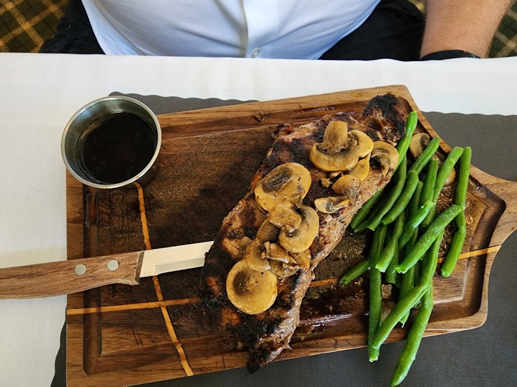 No impressed at all. Looking forward to a good steak dinner after flying in & was highly dissatisfied. Salad bar was just ok. Steak was pure fat/gristle and no flavor. Mushrooms were on the raw side, again flavorless & garlic mashed potatoes tasted instant. Not sure what the deal was, but the green beans were mush? The only thing that was edible was the dinner roll. Don’t recommend this place. Maybe their golfing is good, but food is not. :(