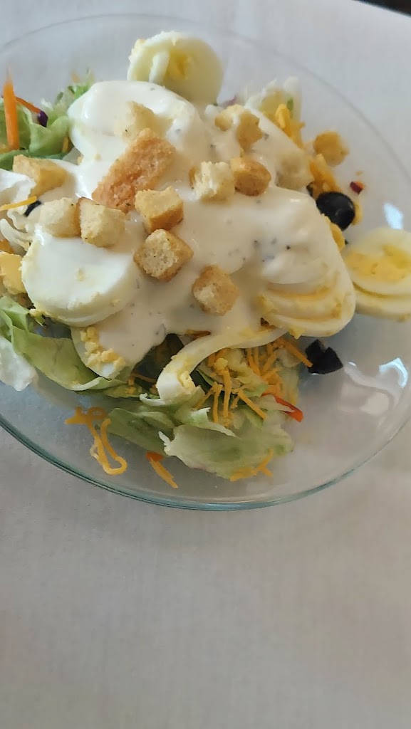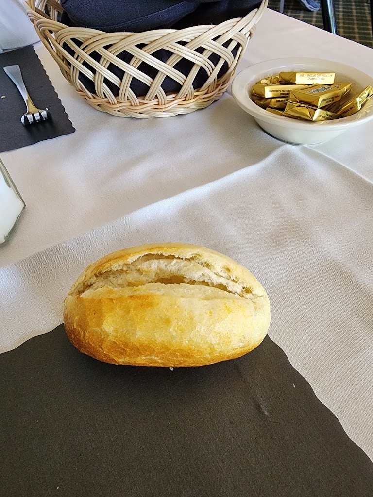 Entrees missing things included on the menu description like garlic bread with the spaghetti and mushrooms with the steak.. salad bar was very lacking (which is what I was excited for). the waitress was nice but seemed very slow for the limited amount of people there. No radio or anything on the patio either which was kind of awkward. But the golf course is beautiful! And I have to give a nod to the other server who was cleaning off a table, had her arms and hands full and pulled the door open with her foot, against the wind! That was impressive, I was about to get up to help! Lol
