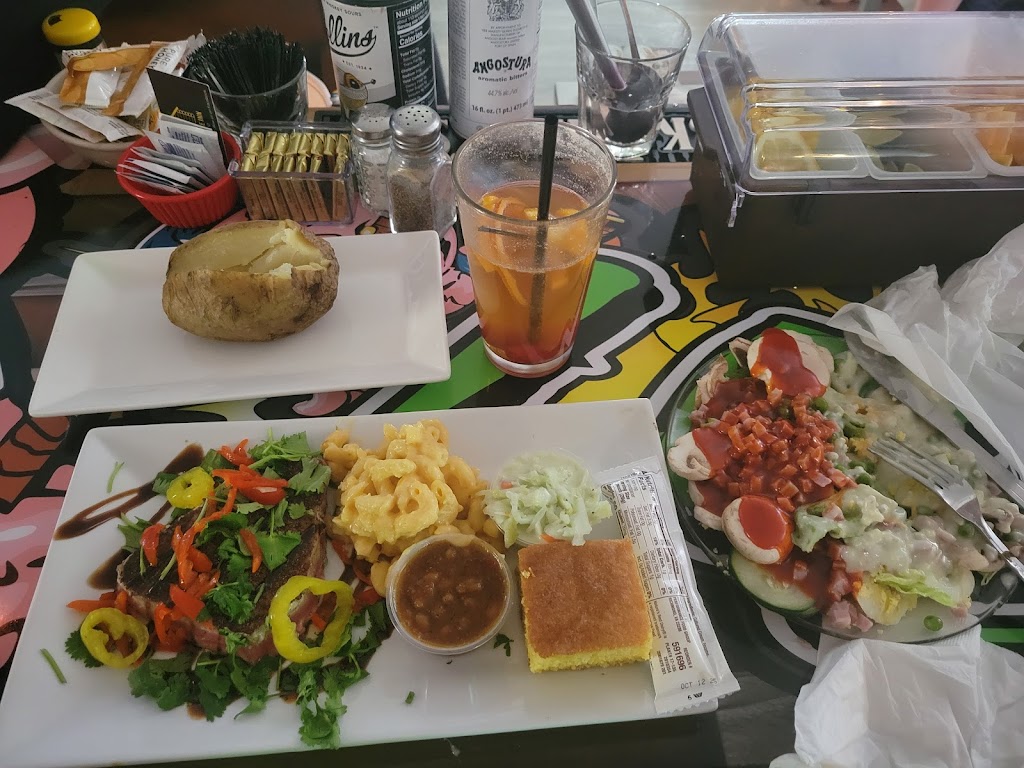 The meal was huge & I could not eat it all. Such a variety plus a nice salad bar that had peas, mushrooms, eggs, & so much more.