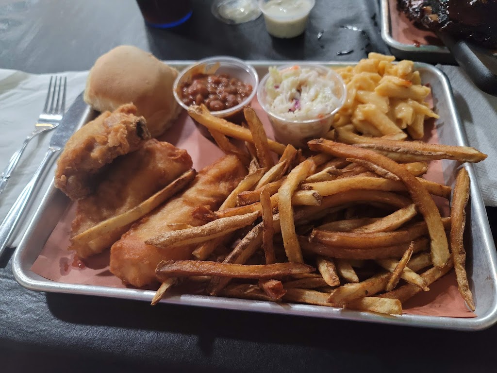 The brisket was amazing, ribs fell off the bone. Great meal.