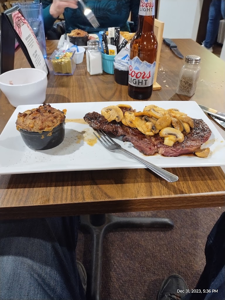 The food is FANTASTIC! The best brisket I've ever had and my husband had the prime rib and throughly enjoy his dinner as well. Lots of food and a dinner or two with left overs. I would highly recommend this restaurant.