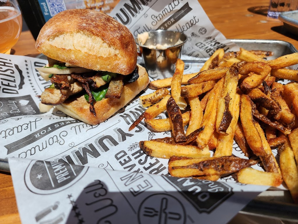 Nice place with open air seating when in season. Ordered the brisket sandwich and got frites as a side. The brioche bun was great, the meat was well done, and the addition of giardinera was different but it worked. The sandwich was good but felt like it was missing something. The frites were very good as well. I chose the beer cheese as my dipping sauce. I won’t select again. It was runny and pretty flavorless. I asked if I could get the cheese curds as a side instead and would pay the full price for the curds and was flat out told no. So between that and the beer cheese is why my rating is a 4