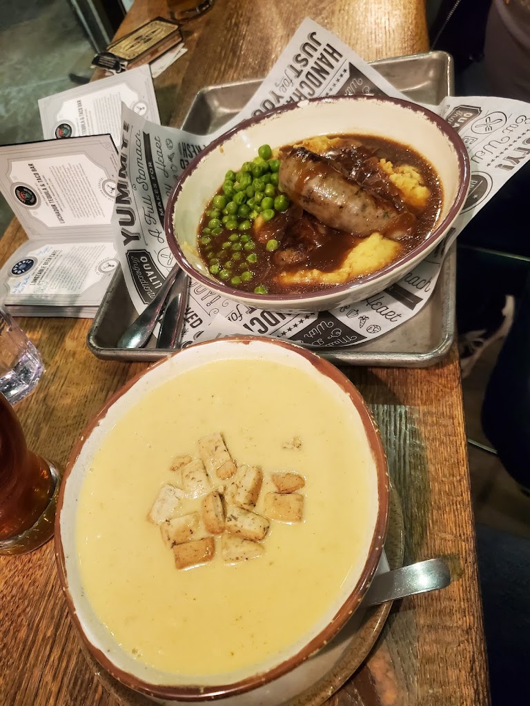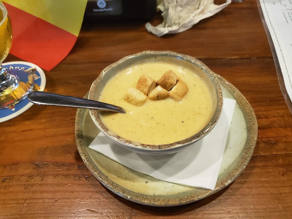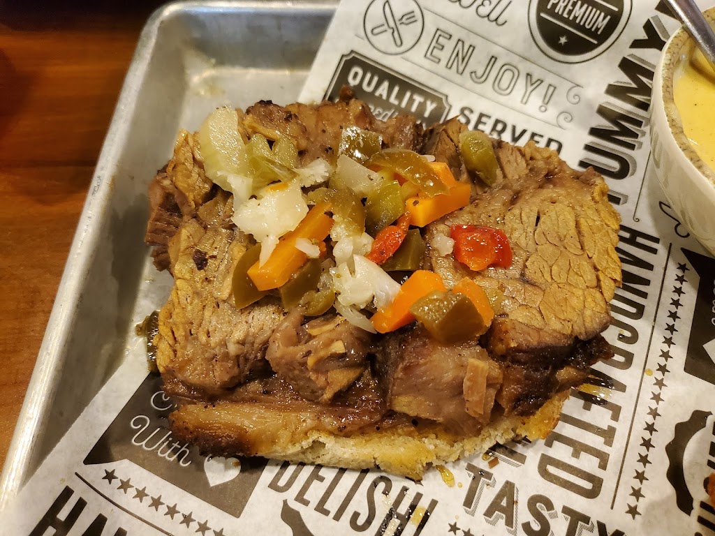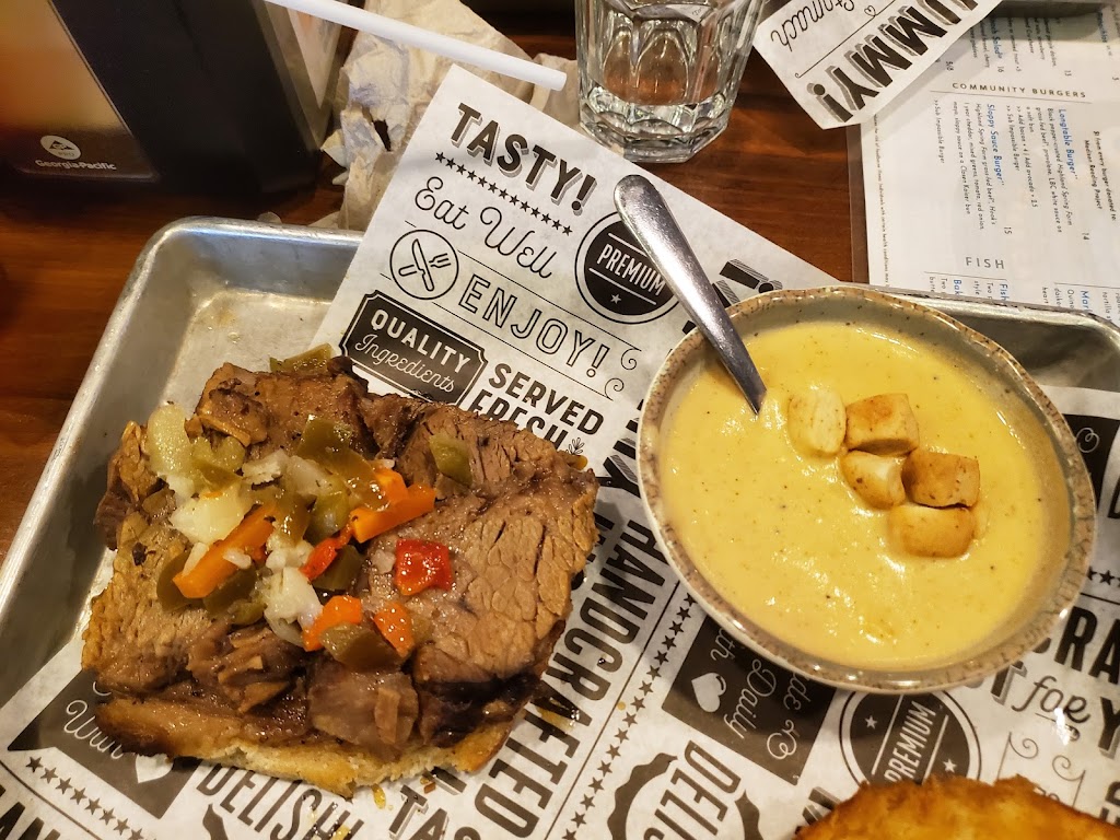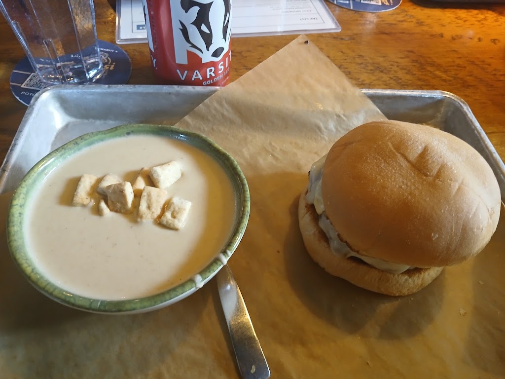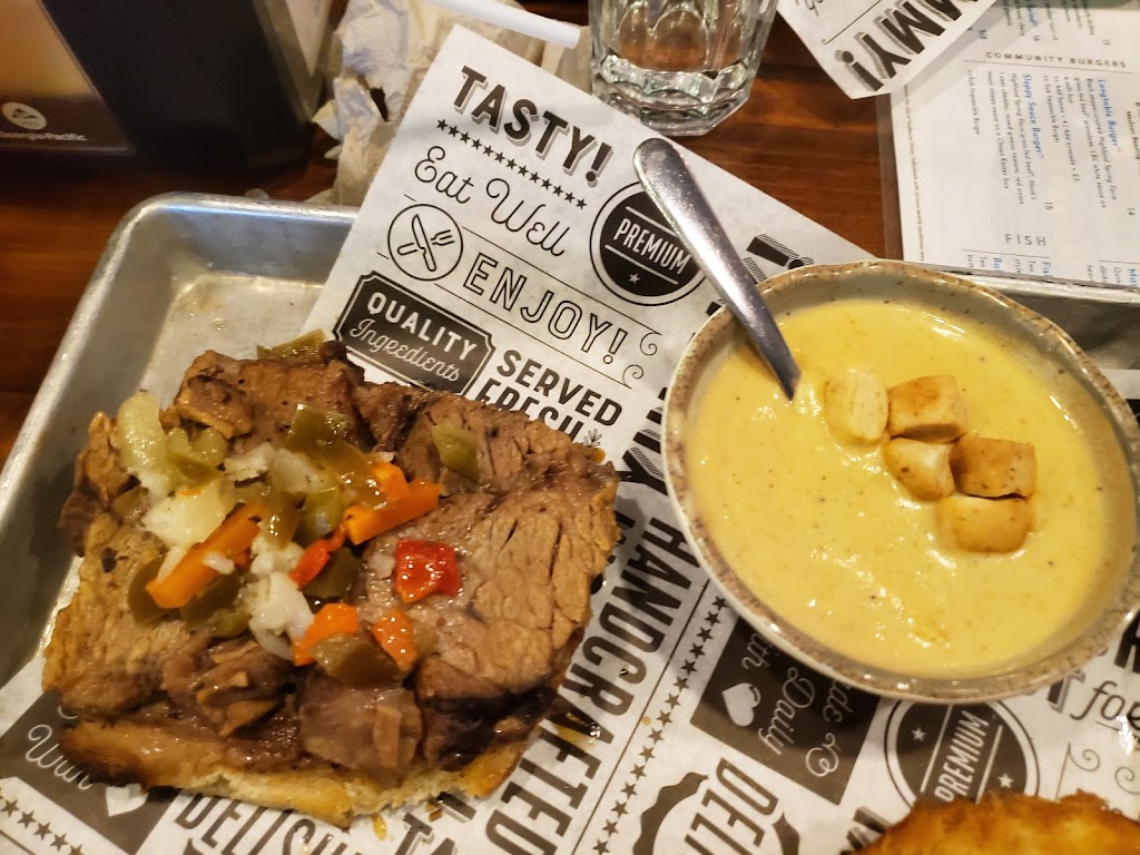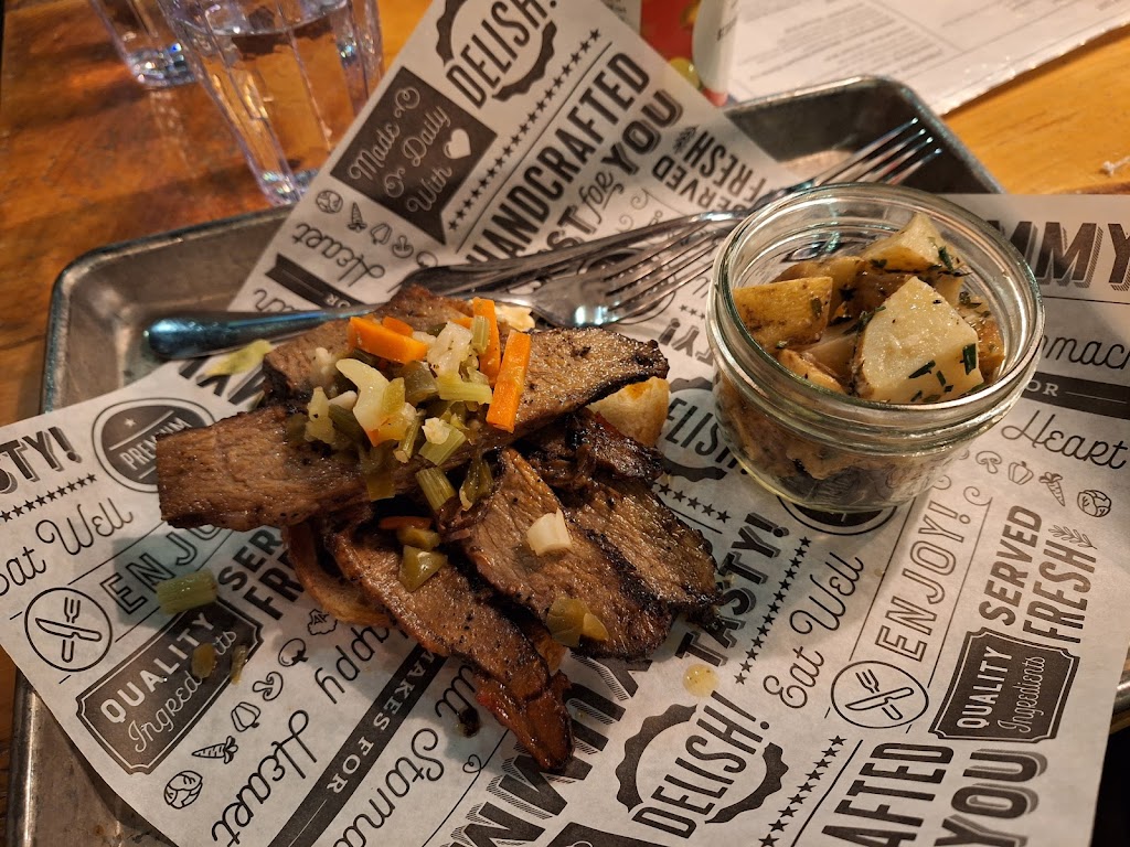 This was a really fun place. Great service. Great beer. Great food. I got the open face brisket with beer cheese soup. Absolutely amazing! Right combo of onion, pepper, & carrot chunks.