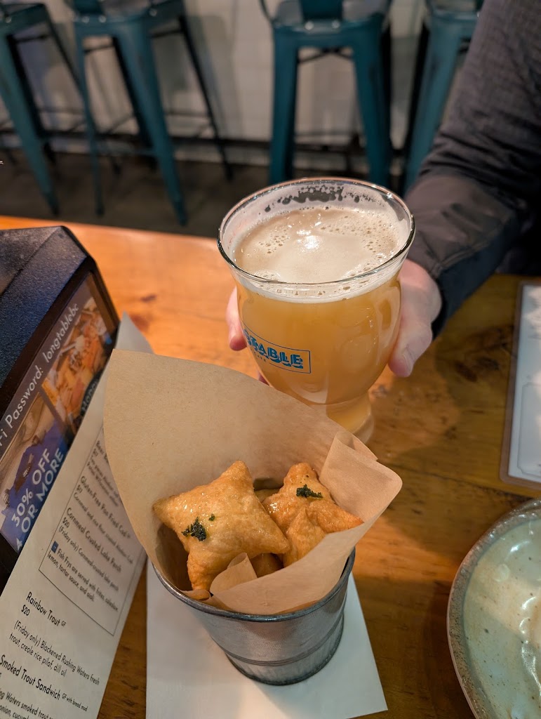 The food was generally good. We loved the pretzel, the cheese curds, and the tacos. The fish fry was disappointing, though, with heavy and off-tasting breading. Their beer selection still excels, and it’s a fun location and ambiance.