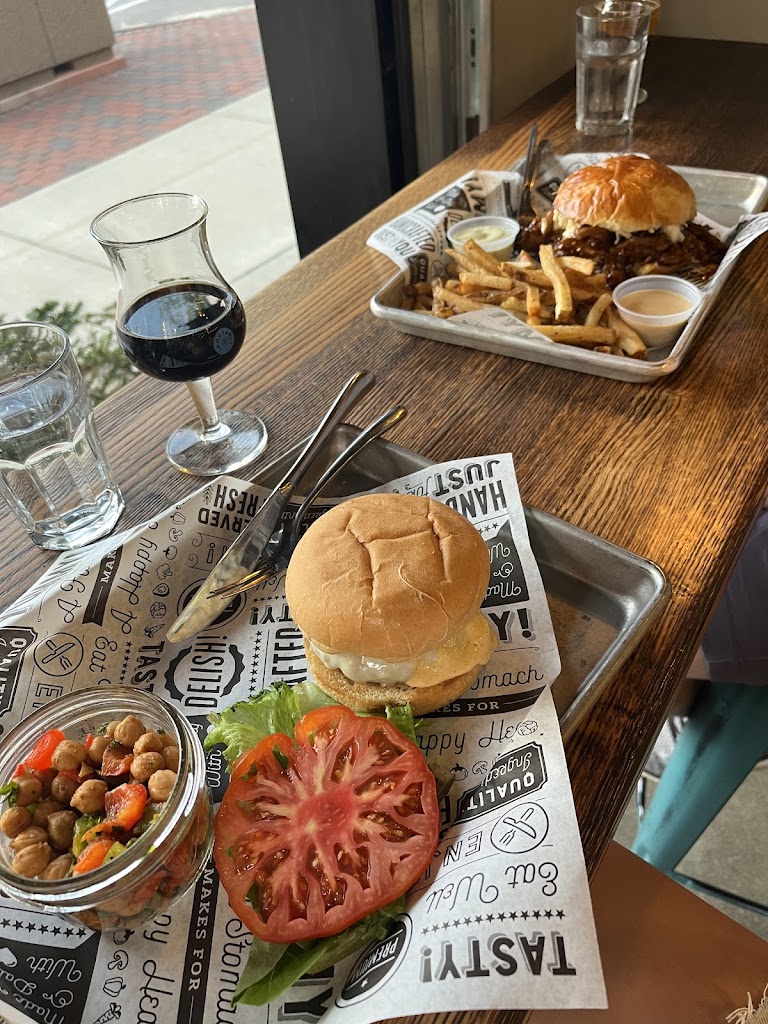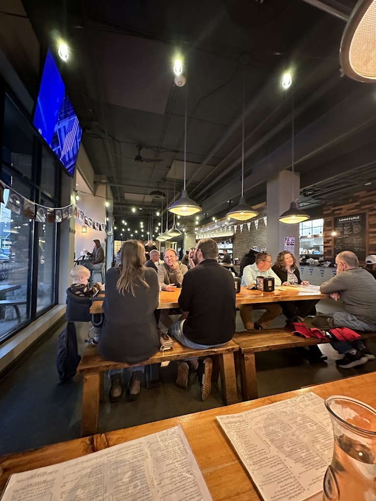 Great place to get dinner and a beer! Awesome selection of beer on tap and in cans. Wine, seltzers, and nonalcoholic options available. We got a burger with chickpea salad and pulled pork sandwich with fries- both were good. Longtable has good options for vegetarians and vegans too! Lovely atmosphere with plenty of seating and all of the staff and employees were friendly and helpful. Would definitely recommend if you’re in Middleton!