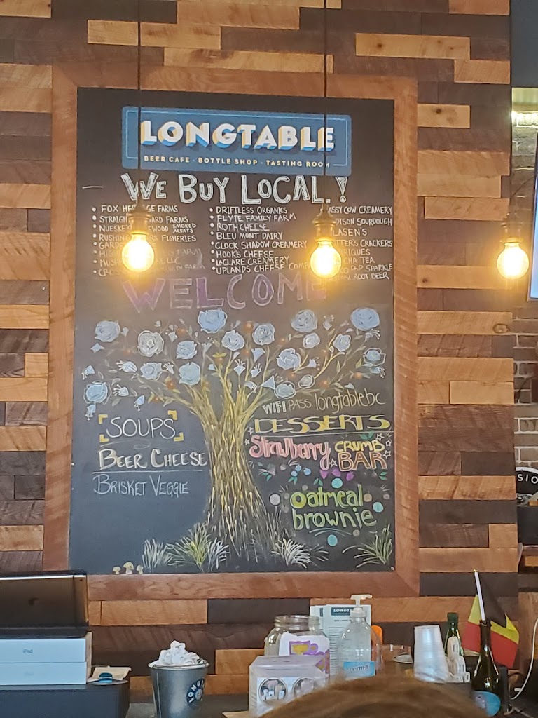 Longtable Beer Cafe is a combination cafe, bottle shop and tasting room, located in Downtown Middleton which offers a communal experience in craft beer and food. One of the things we have loved most about the craft beer world in the fifteen years we owned Brasserie V in Madison and now over seven years at Longtable is the sharing aspect of this culture; craft beer brings people together with bottle shares and connecting over a pour. To bring this concept to life, Longtable offers a selection of 300 craft beers in a self-serve open cooler, along with 12 rotating taps.