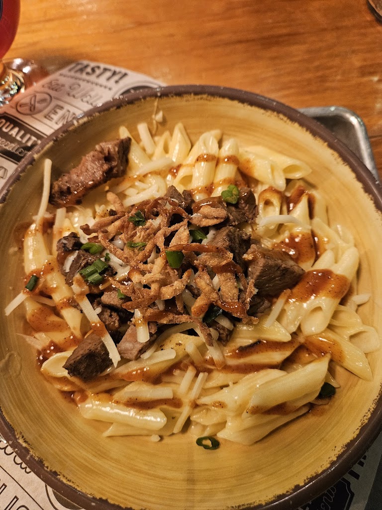 The atmosphere was great. Cheese curds were nothing great! Soft pretzel would be recommended. Philly cheese steak was good! Wings and brisket salad were basic! BBQ platter was descent but was nothing amazing!
