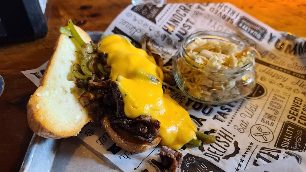 Excellent cheese curds. Philly cheese steak and coleslaw good but did not absolutely wow me. Very casual atmosphere, large selection of unique bottle or can beer. Nice selection of tap beer too.