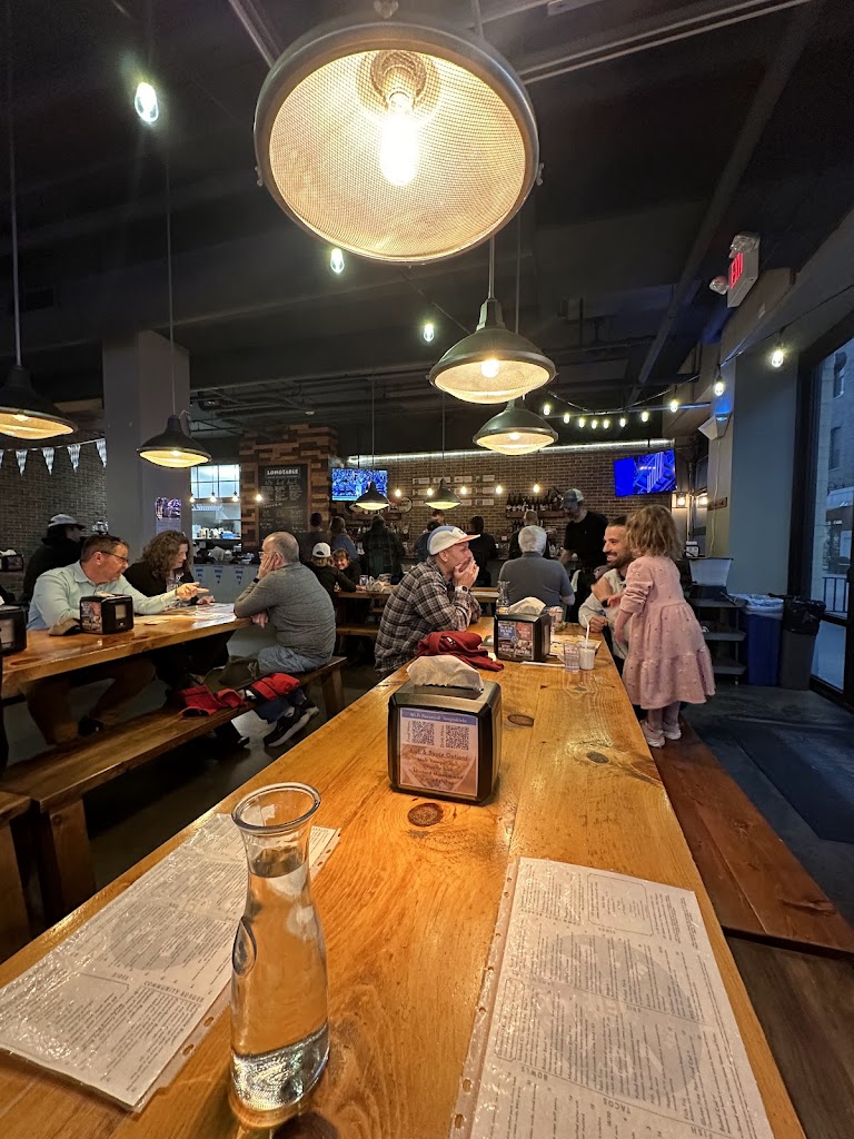 I went about 3pm on a Saturday, the bar was full and about half the tables. It was a pleasant atmosphere and the choices of beers was great. The only downfall was the service at the bar was poor, I had an empty glass sitting for 15 minutes and I still was unsure who was bartending. I finally got a person's attention and got a second beer. Staff was restocking glasses but was unable to help me. It just seemed odd with 4 people milling around that nobody seemed to know exactly who was to do what. The menu looked really good and I was going to order but again nobody at the time could take it. When I was leaving I waited to pay for two beers but nobody was behind the bar so I left $20 under my glass and left. I hope the reviews I have seem are more indicative of the Long table than my experience and I will give it another go.