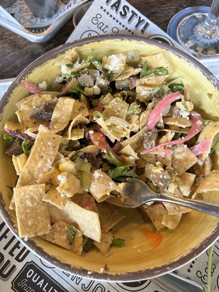 I’ll admit I had really high expectations, but that’s because the rating on Google is so high. My hypothesis is that people love the gimmick of sitting at a long table and having a large beer list. I am not into the gimmick but that doesn’t effect my review. I am simply rating the entree that I ordered. I ordered the brisket bowl for $17. If you are familiar with bowl style entrees from a place like forage or Qdoba this is not that. I would say it was like nachos but in a bowl. It’s was 60% tortilla strips. The brisket I assumed would be the same style that would have been served if I had ordered the brisket alone, instead it was tiny cubes, like the size of a fingernail. I didn’t get to taste the sauce because there was maybe a splash. I’m so confused how they decided that this was a $17 item, or something that should be on the menu at all. I found probably 6 tiny piece of brisket that looked safe to eat, others were just fat or weirdly colored. As you can imagine with an extremely small piece of meat it was incredibly dry and tasted like nothing. I wouldn’t be able to keep a straight face as a waitstaff handing this to someone.