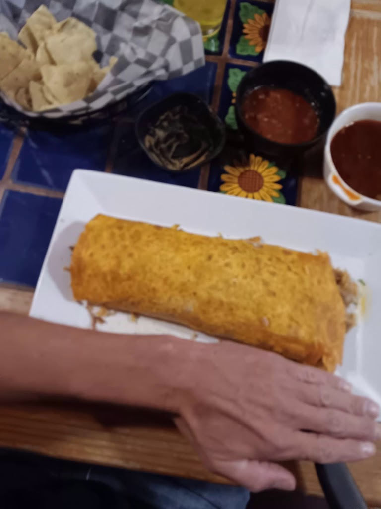 The food was incredibly good. Had the 16 inch Tio's burrito best burrito I have ever had. The chips and salsa were also very good. Can't wait until my next visit. (Possibly take on the burrito Challenge. Very friendly staff and good location. Wish I could give more than 5 stars