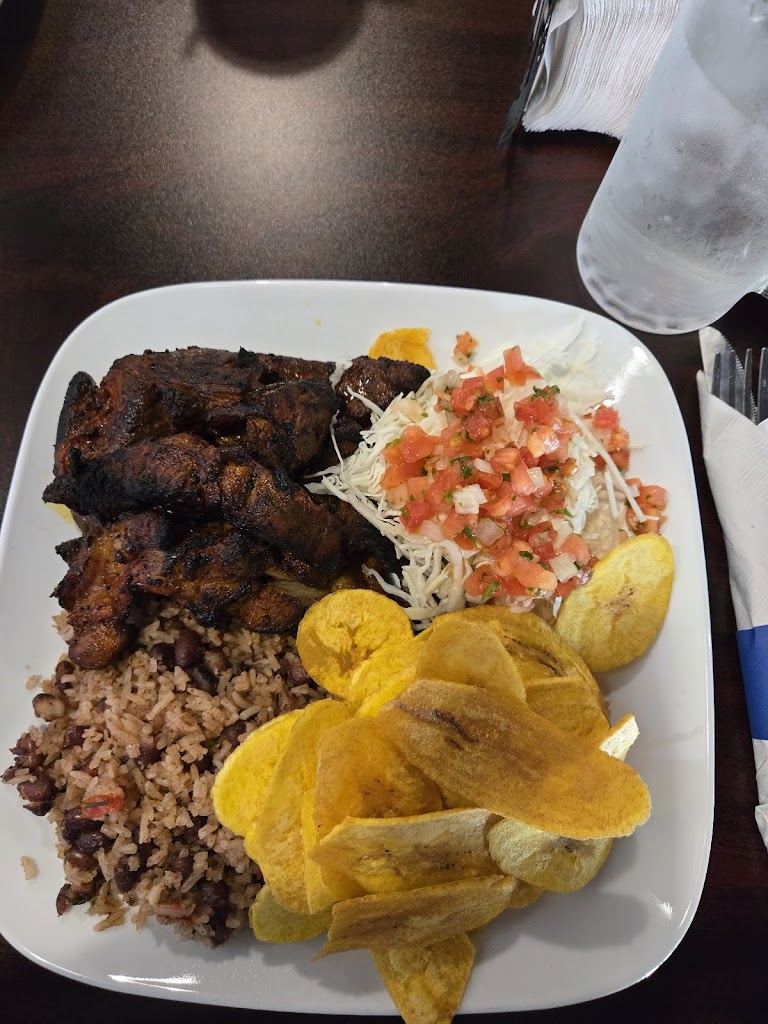 Expect authentic Nicaraguan fair. We ordered takeout. I had the pork, and my wife had the fried chicken. The batter on the chicken is awesome. Love the crispy style batter. The plantain chips are great. We will absolutely be back.