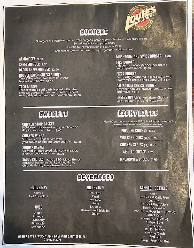 Great place for a burger. It's off the beaten path but every time we go, it's busy. The food and service has always been great. Ella is a great asset to Louies as well.