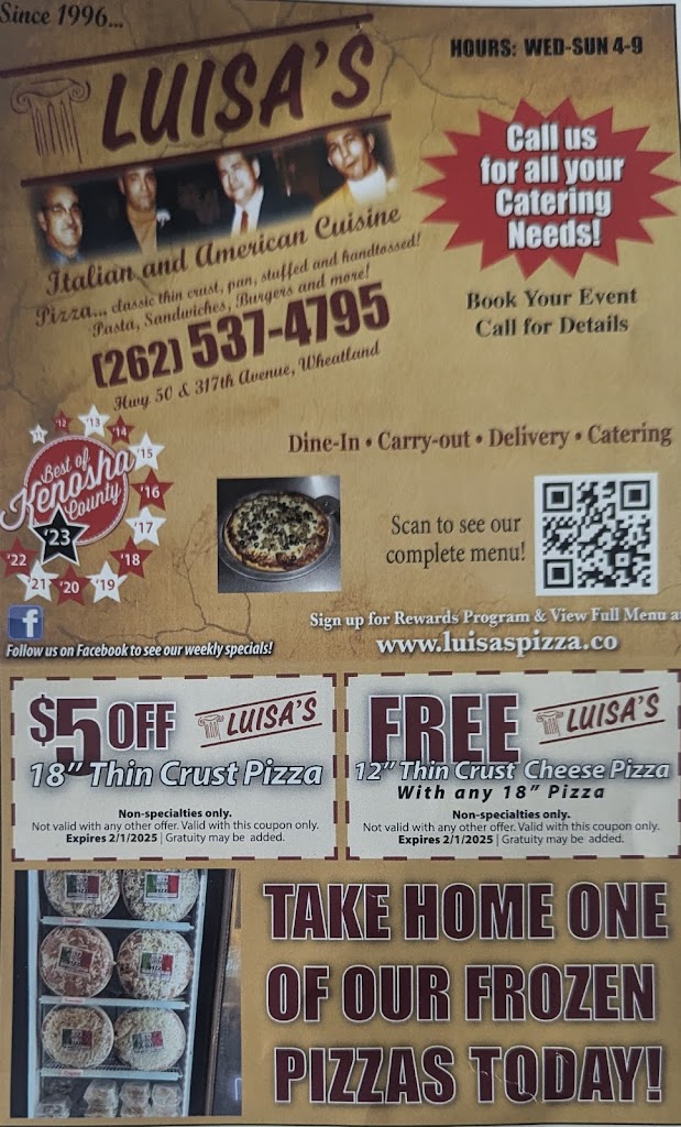 There’s a reason why they have the best pizza in Kenosha county for almost 100 years (lol). Staff is friendly! Owners are the kindness! THE PIZZA IS FANTASTIC!!!!