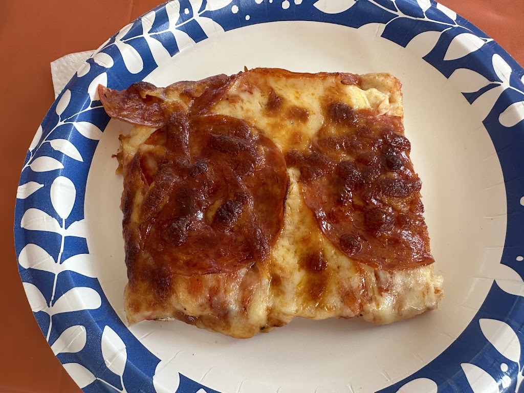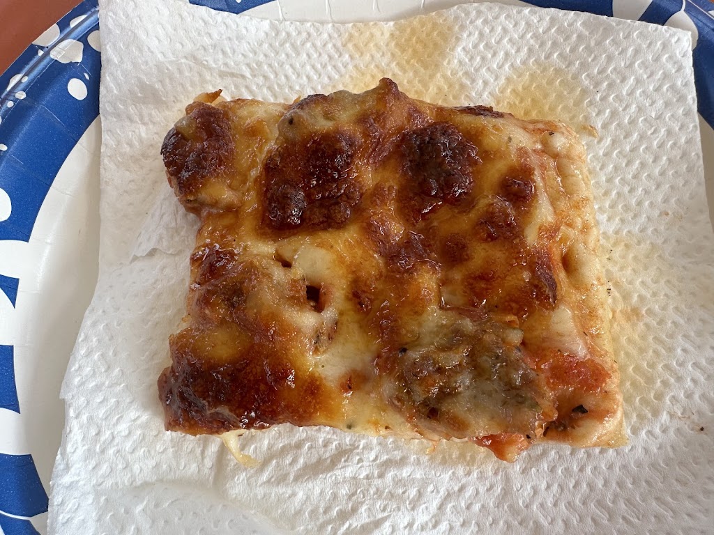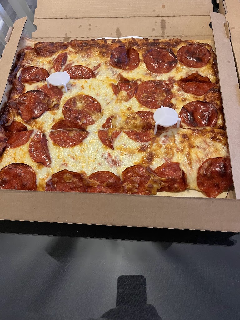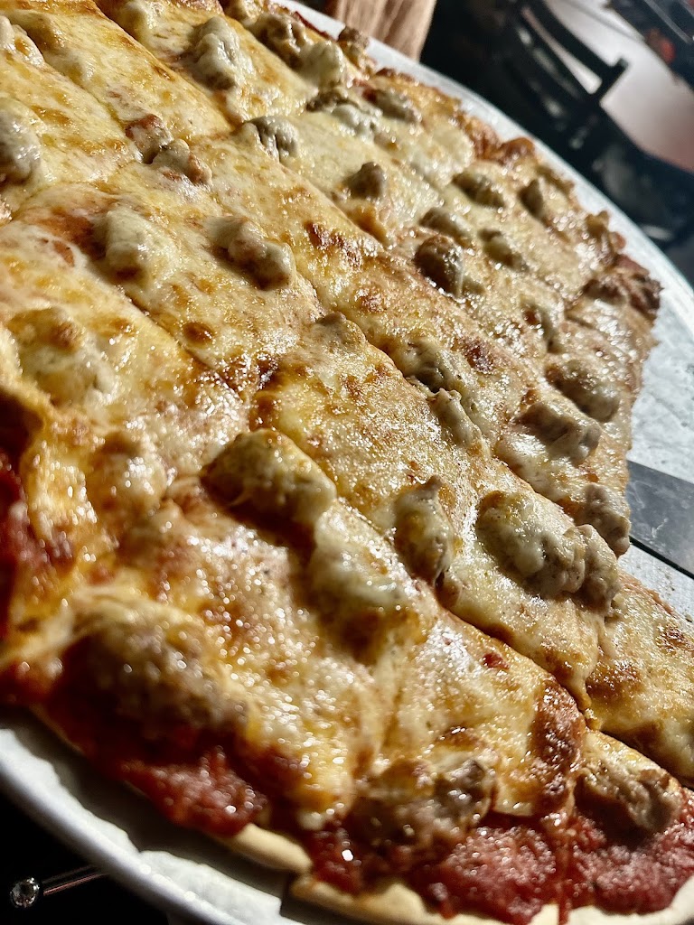 Had the sheet pizza. Half sausage half pepperoni. Very big. Can easily freed 4-6. Was very good. Lots of cheese.