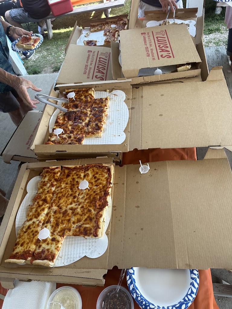 We were at a gathering of people outside today and they had Luisa's Pizza delivered. OMG... It was delicious! I think there were 16 pizzas in total. Pepperoni, Sausage, Cheese, Mushroom and Sausage, and many more. I had a huge slice of the Pepperoni pizza and a slice of the Sausage pizza. The crust was thick, cheesy, and incredible! I have never seen larger pieces of pepperoni in my life! I highly recommend Luisa's Pizza!!! Mmmm!!!