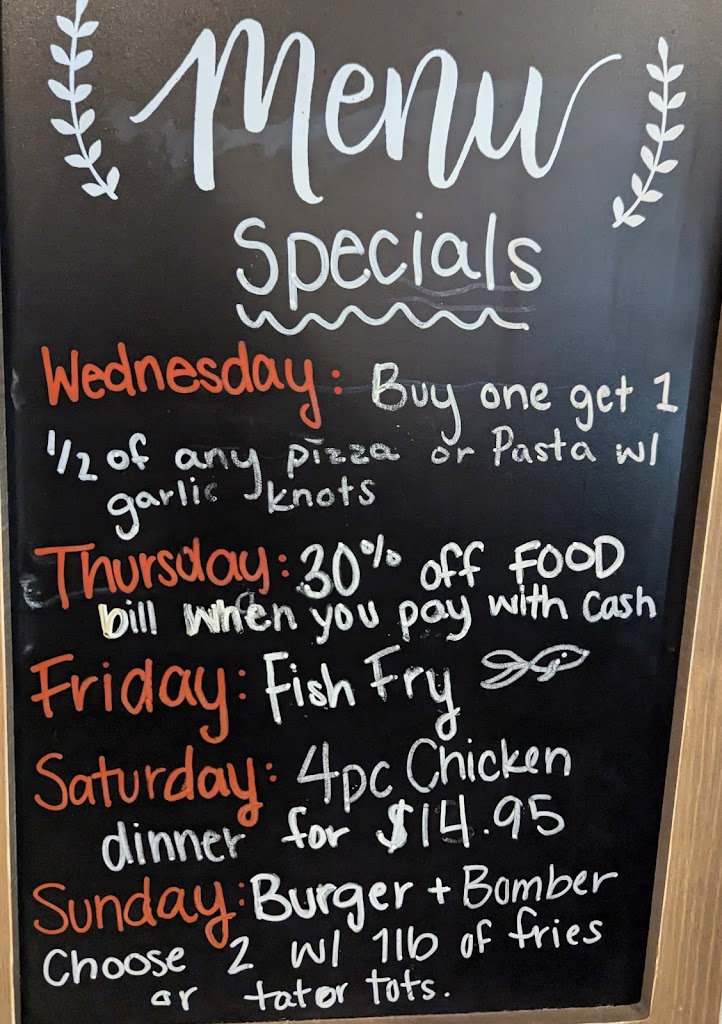 We had placed an order previously in the past and ordered the Mexican pizza which had no seasoning and super bland. We also ordered a few other items which also were bland. I wanted too give this place another chance because I really wanted to like it but once again on Wednesday I had placed another order for my family. Myself and husband both had the cod dinner which honestly tasted as if it was warmed in a microwave with nothing for seasoning, the only that was okay was my husband’s salad. My cod was just as bad and only edible part was the potato pancakes soup. My kids food was okay.. onion rings mushy and fries were not good what so ever. Prices are a bit high for the quality of the food in my opinion.