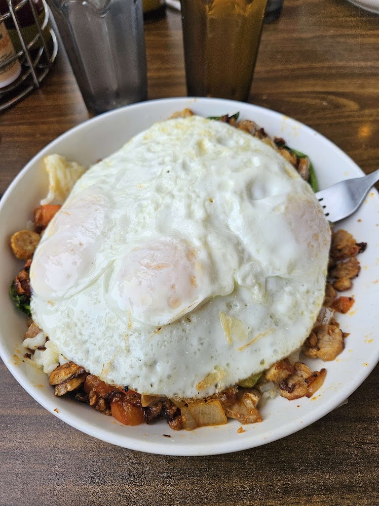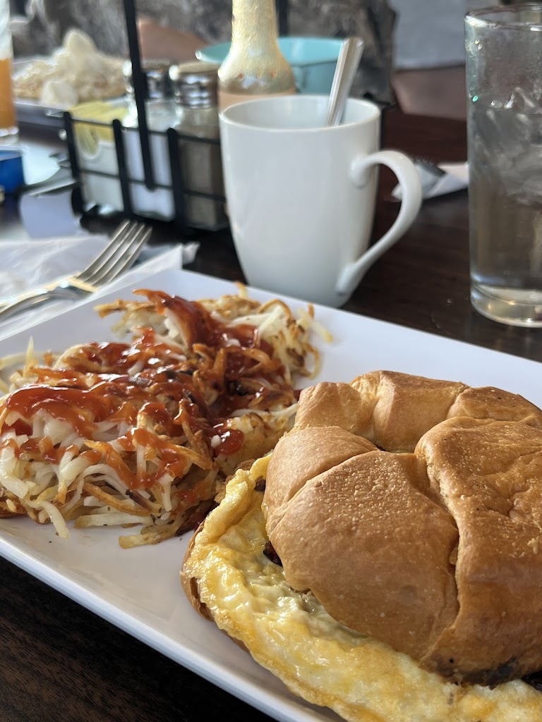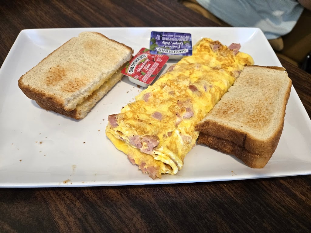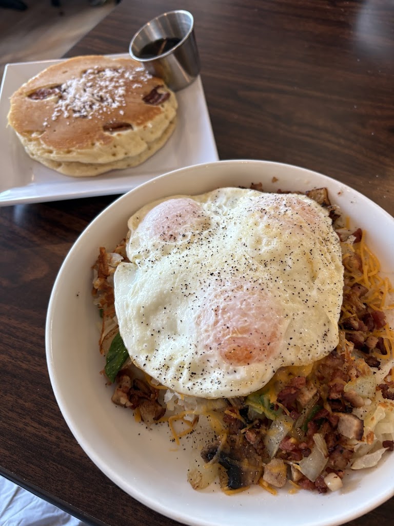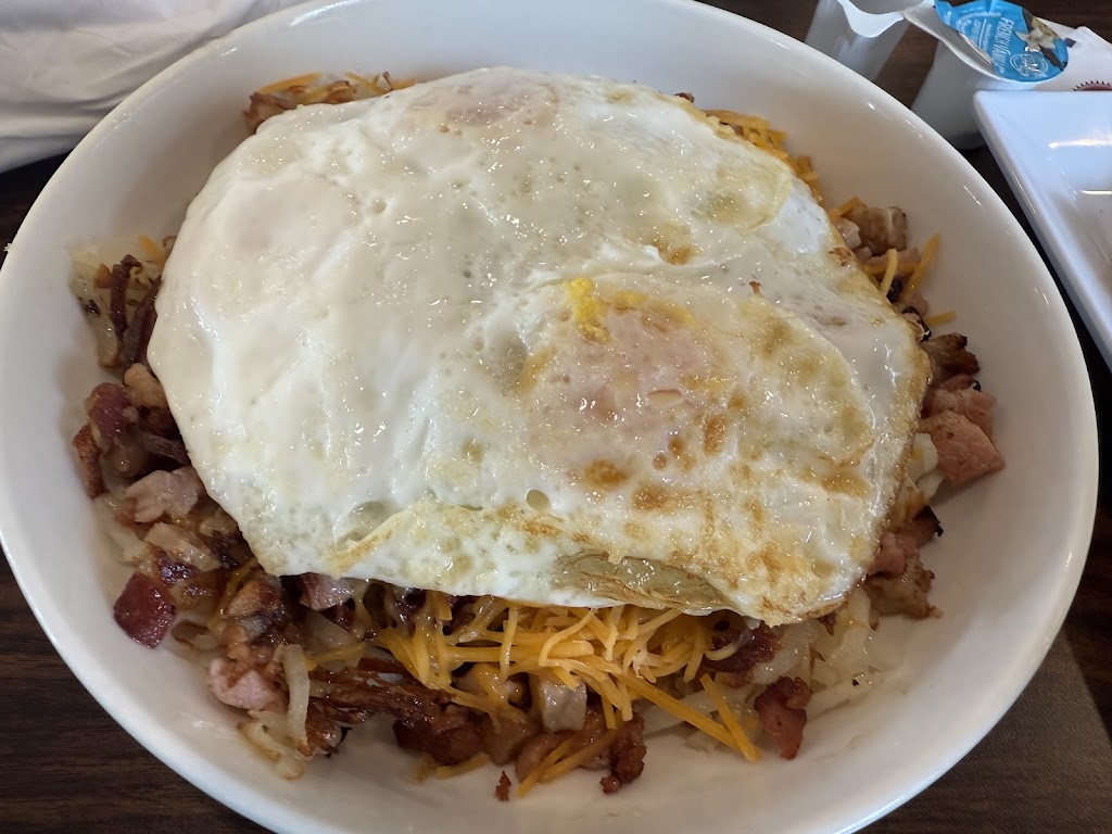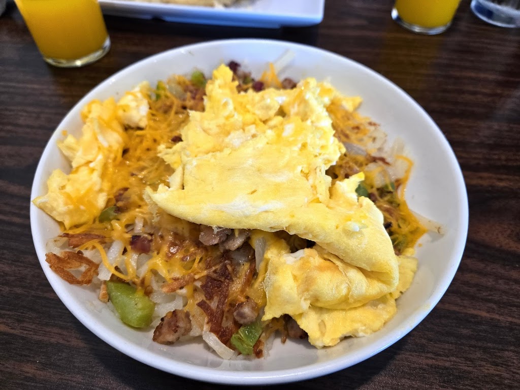 Went there for a quick bite. Got the meat lovers skillet. Was told to seat myself and the woman who came to initially see what i wanted to drink didn’t seemed to thrilled to get me a coffee and water. The server was great and the food came out quick. The skillet was an average skillet that you could get at either a Perkins or Dennys.