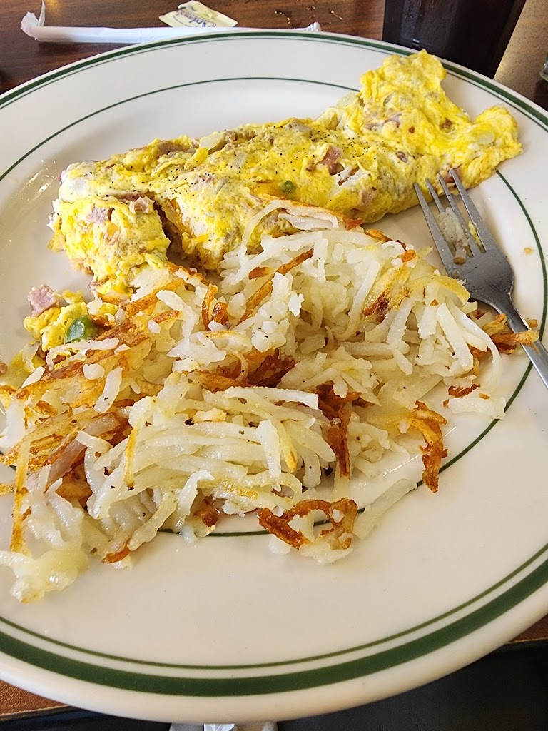 Met a friend at 11:30 a.m. who I hadn't seen in years, so we had a lot of catching up to do. Our waitress was outstanding. our omelettes were cooked to perfection and the hashbrown were crisp on the outside, soft in the center.