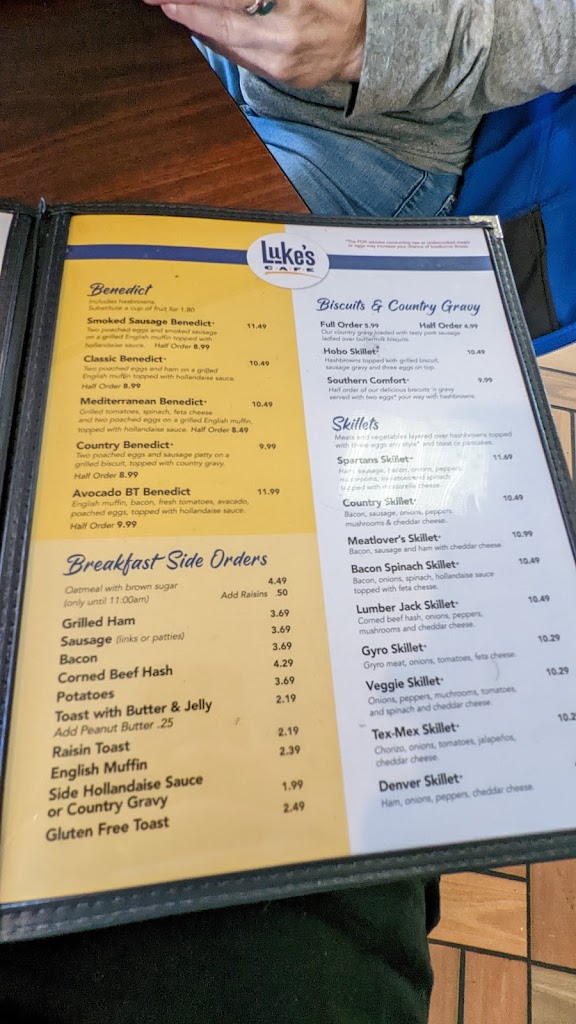 Great food, great family friendly atmosphere. I believe Luke and his wife both work here, which makes it a great environment. Many of the servers have worked here for a number of years so they are seasoned and very professional and on top of your orders. The pancakes are excellent, and I always enjoy the ham steak with my eggs. Highly recommend!