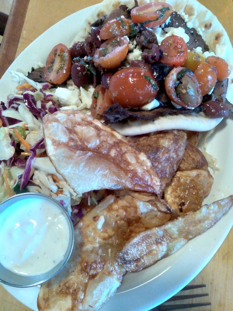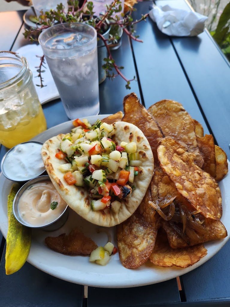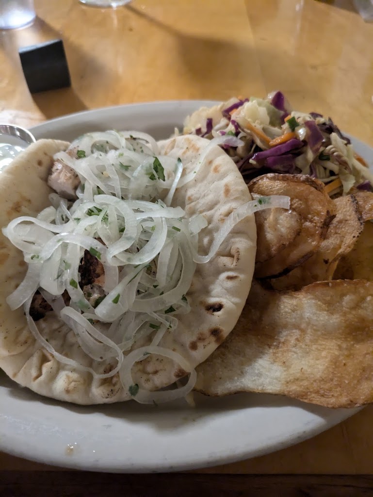 I ordered takeout for the Indian chicken pita and they forgot the sauce so it was basically just a few pieces of chicken on a pita with some chips for $13, not really worth it imo.
