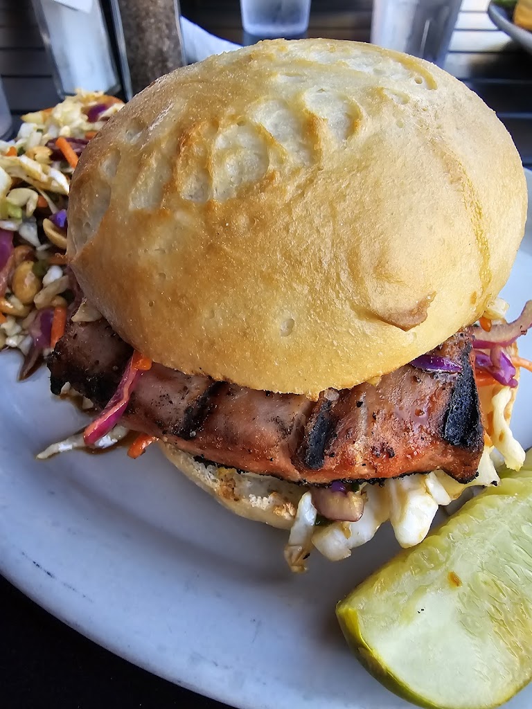 I ended up getting the salmon steak that was very thick and juicy on an eddy bun.