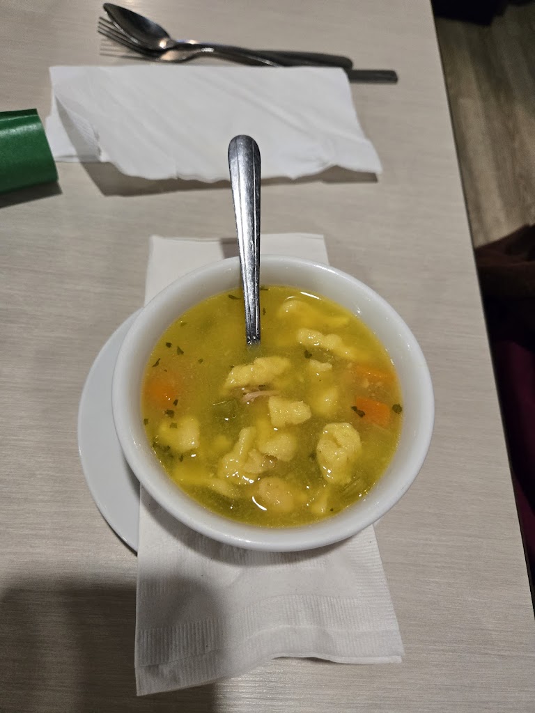 First off I LOVE GIVING 5 STARS to places I try fir the first time......however i have to give mediocre stars for mediocre food and service. The soup was excellent....but the liver and onions...which is one of my all time favorites was not very good...not crusp...flavorful and Luke warm. The onions were barley cooked and slapped together. But IF I would have gotten great service I would have given 5 stars. As you can see from the photos I put up...the server didn't clear any dirty plates..prebussed.....upsell....suggestive sell...offered desert or anything. He didn't even do a standard 2 bite 2 minutes check back to see if I needed anything or if food was good or nothing...ii still left 20% but I usually leave 50%...oh well. Server should know at least the steps of service.