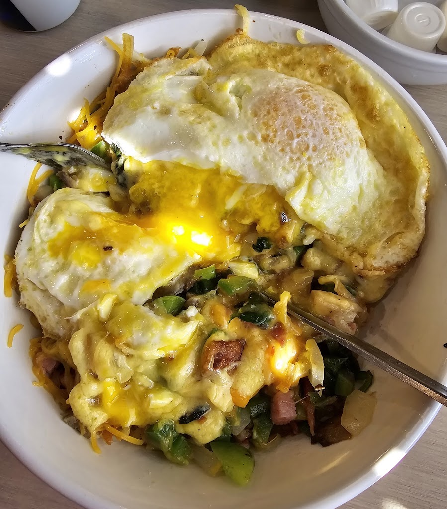 I ordered Corn beef hash bowl with hash browns and overeasy egg - it was delicious!