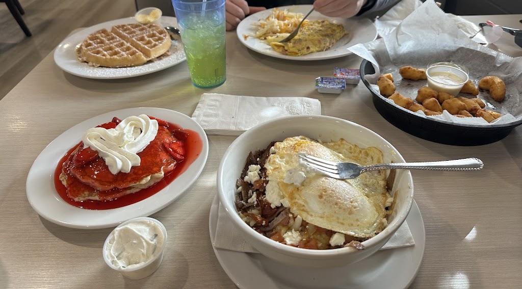 Stopped here for breakfast yesterday around 9 am and we were sat right away. Within a couple minutes of us getting a table there was a line at the door! The service was fast and very attentive! The coffee was very good and our cups were never empty. We ordered the Cali omelet with hashbrowns and fruit, corned beef hash bowl with fruit, pancakes, and applesauce for our little one. Without even asking our waiter brought the applesauce out immediately. The rest of our food came shockingly fast. Everything was delicious! We were very impressed with the entire experience. We live about 2 hours away, and wished we had a gem like this in our town, we will be back when in the area again.