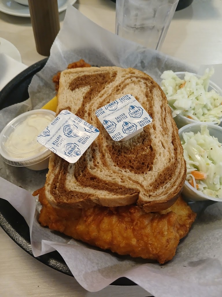 Just moved to town and have had breakfast twice and fish fry once here. I'm very picky when it come to food but can tell I'll be stopping here at least once a week. Great serving sizes and nicely seasoned food. This is my new place for fish on a Friday. Met the owner and he was extremely nice and welcoming. Highly recommend!