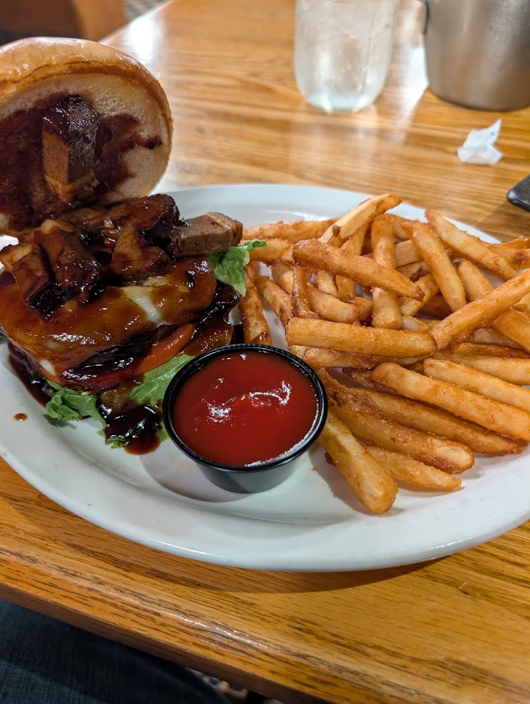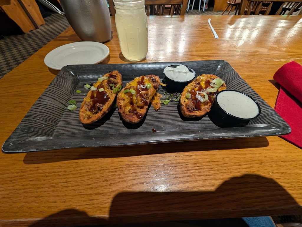 Update 9/9/2025 I went back again to try something different. I started with the potato skins because those were fantastic and they did not disappoint this time either! Then I went with the shed burger and some fries. The burger was cooked perfectly to the medium I requested, the brisket topping the already sizable burger added a level of texture and flavor that just elevated the meal to the next level. I really enjoyed the crispy fries but I'll be honest I was pretty much stuffed by the time I hit those 😂. Again fantastic service will continue to visit here during my work visits!