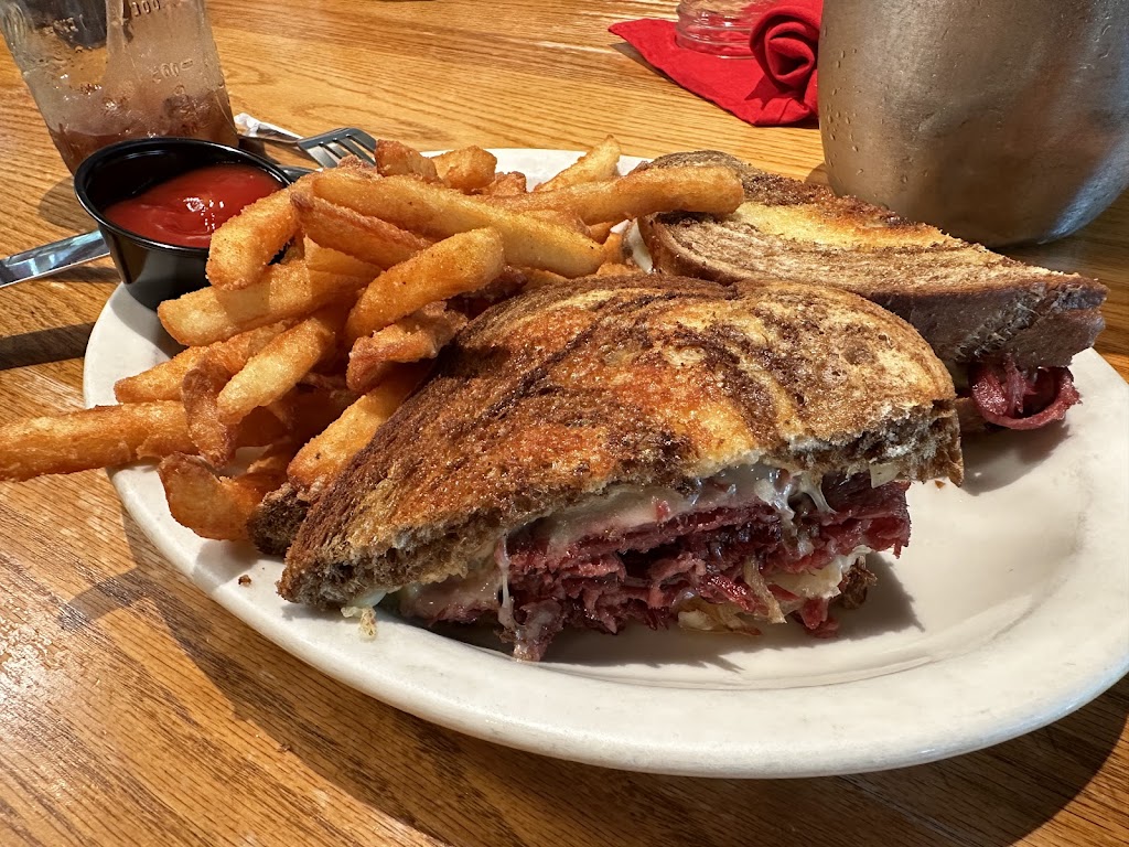 The Reuben was filling. The fries were great. My wife had the meatloaf and mashed potatoes , they were great.