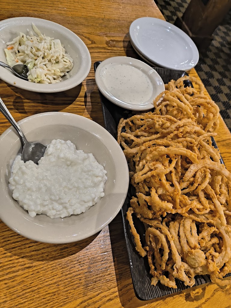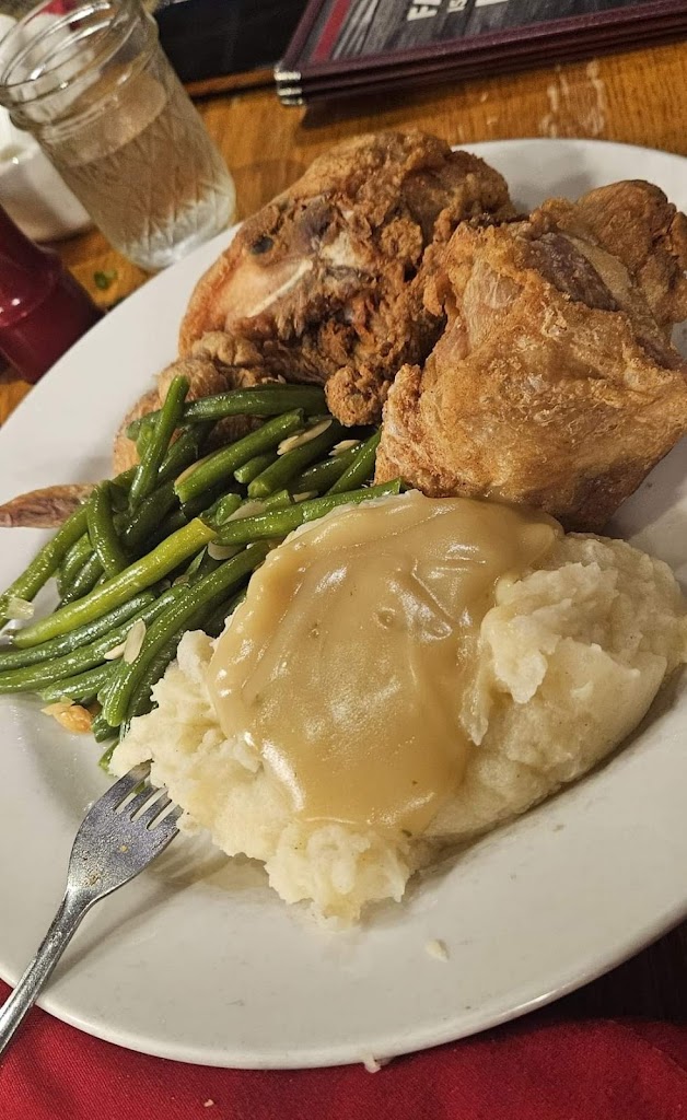 This restaurant was a pleasant surprise! When we drove by it, we thought it was closed. Our hotel person told us it was open and very good, so we gave it a try. (The door is actually in the back.) I will say that their chicken fried chicken is the best I’ve ever had! The chicken was moist and the crust was delicious! Stephanie, our waitress, took very good care of us. All the sides were yummy and plentiful.