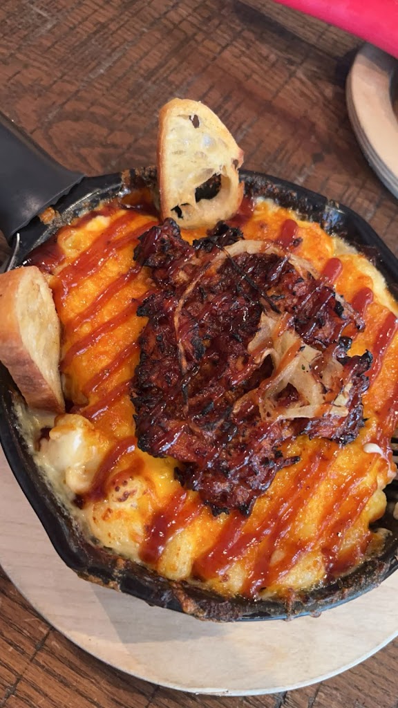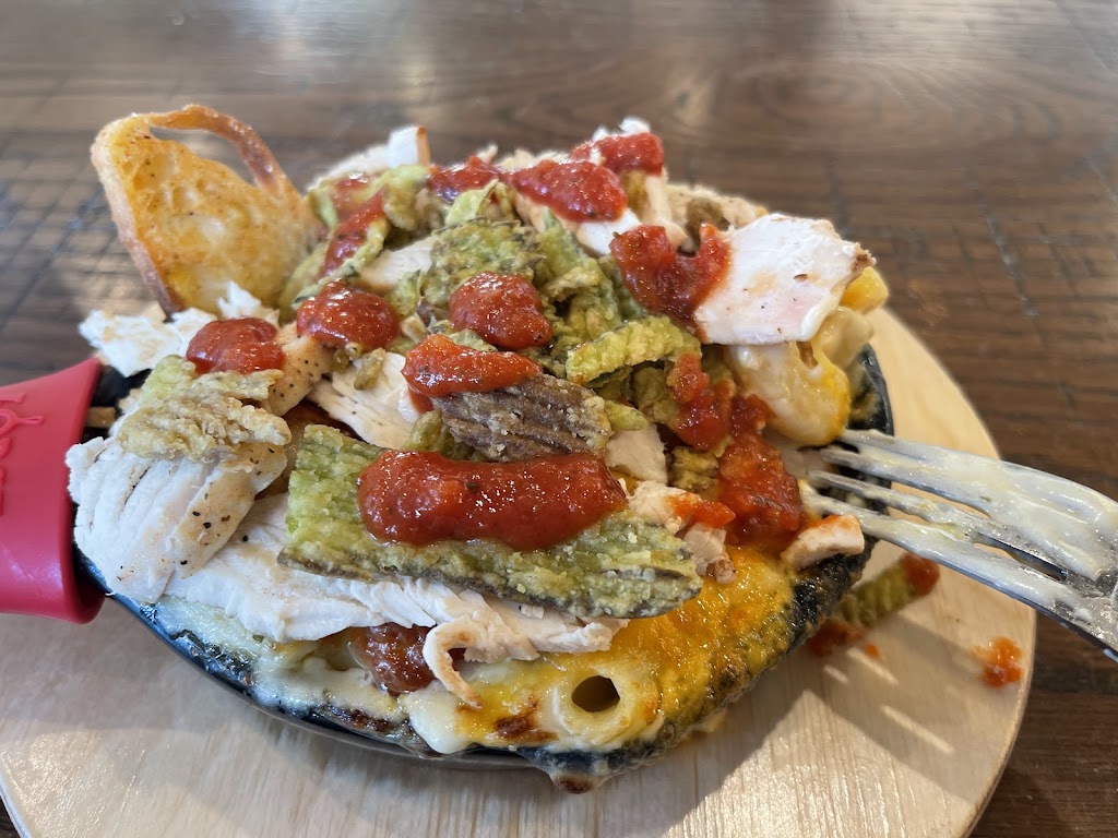 2nd time ordering from this chain restaurant, first time from this location. I ordered the jalapeño popper Mac and cheese and it tasted good, but I wish there would’ve been a veggie garnish in there. It seems like from the first time to the second of going to these restaurants, the veggie garnish is no longer being put on. I thought I remembered some scallions on the pulled pork Mac, but it didn’t have them on my partners this time around. Also smaller portions than expected.