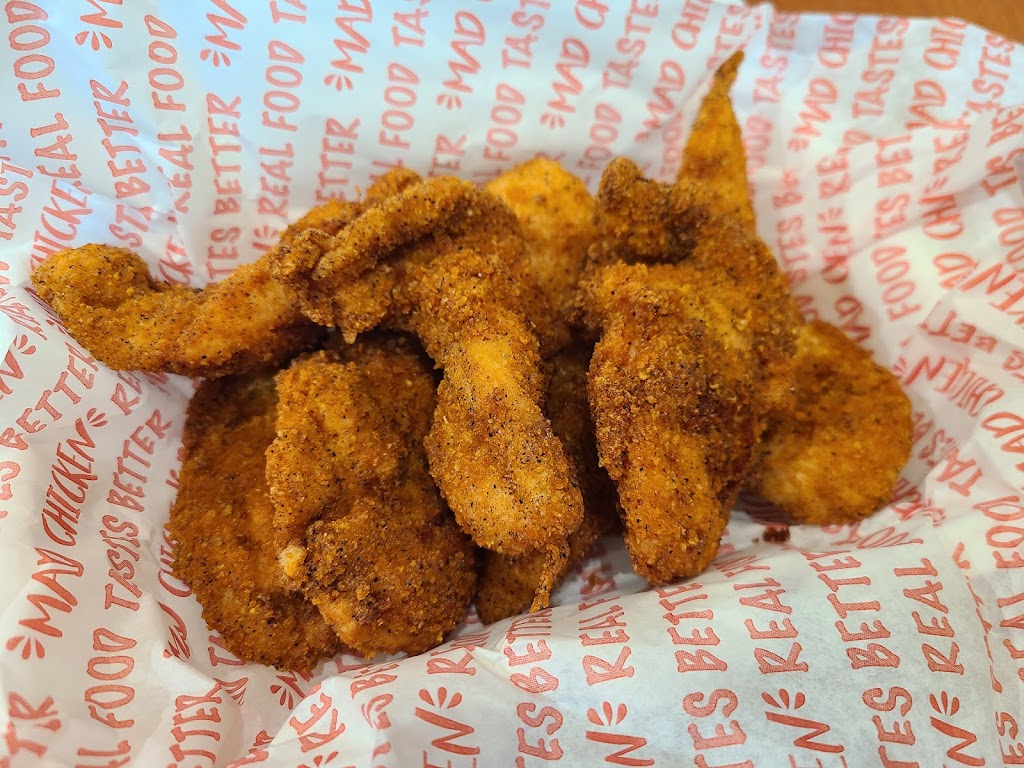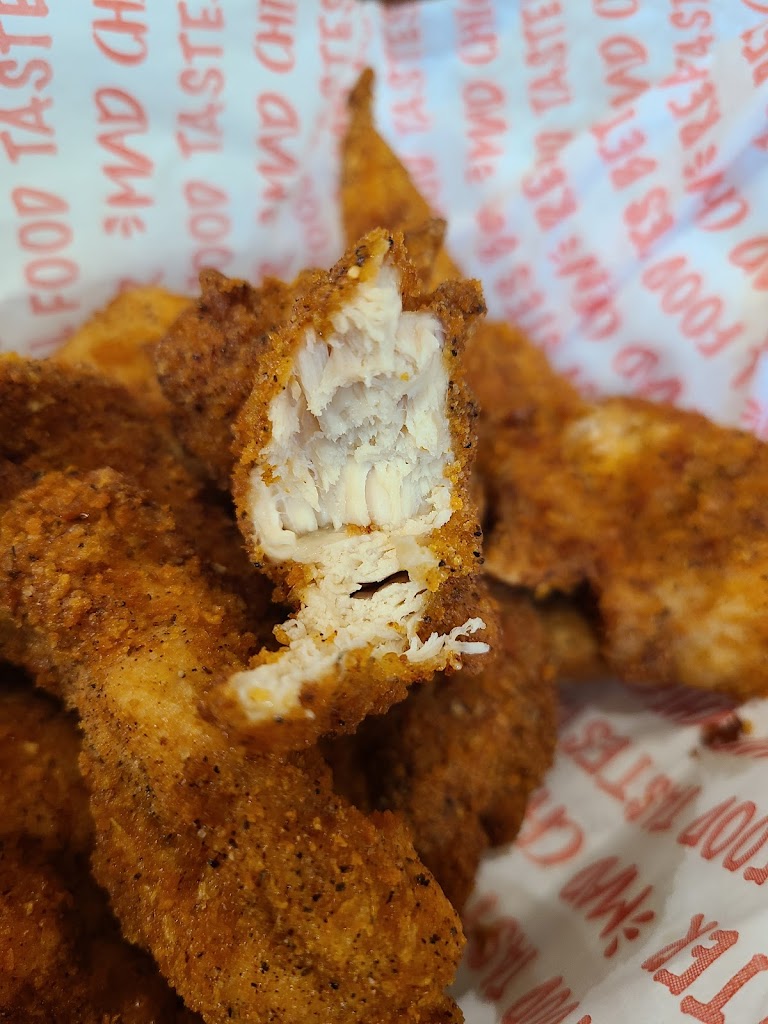 They fry the chicken when you order so it's good just takes a minute. Gave me extra tenders too. The mad fire is my favorite.