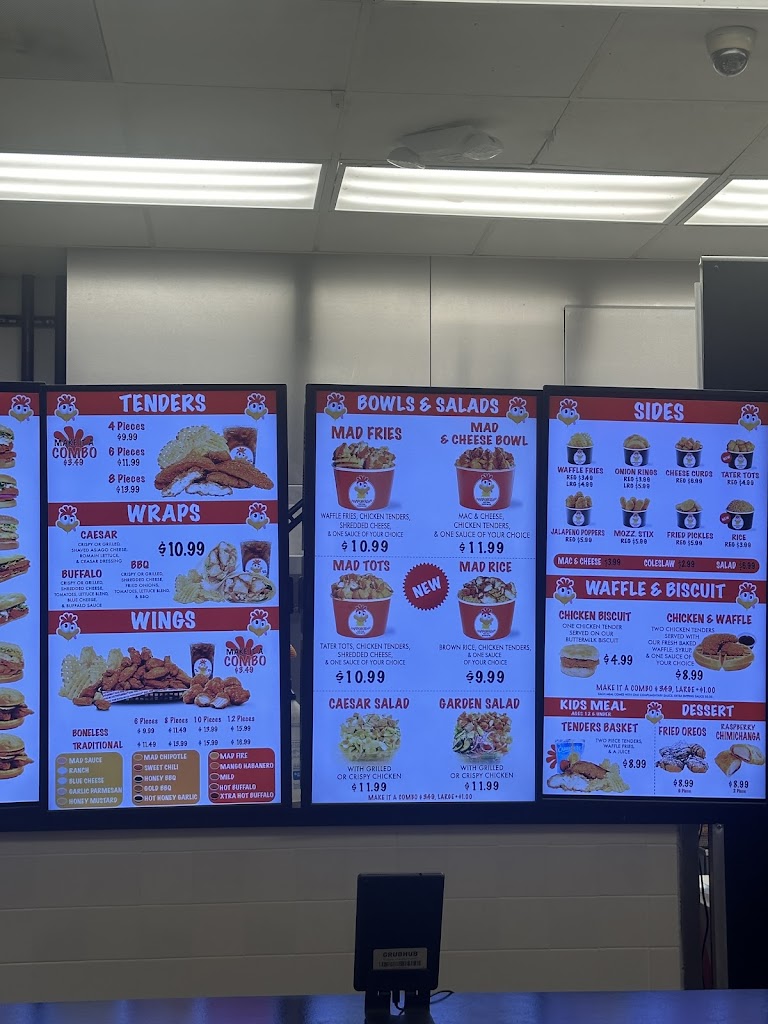 My wife and I tried Mad Chicken today. We shared a warm Chicken salad and a chicken tot and cheese bowl. When we ordered there was a large choice of sauces. I asked what their signature Mad sauce tasted like, the person couldn't tell me. The server was very quiet and came off as cold. The food was very good and the savings of food were large. We will try again.