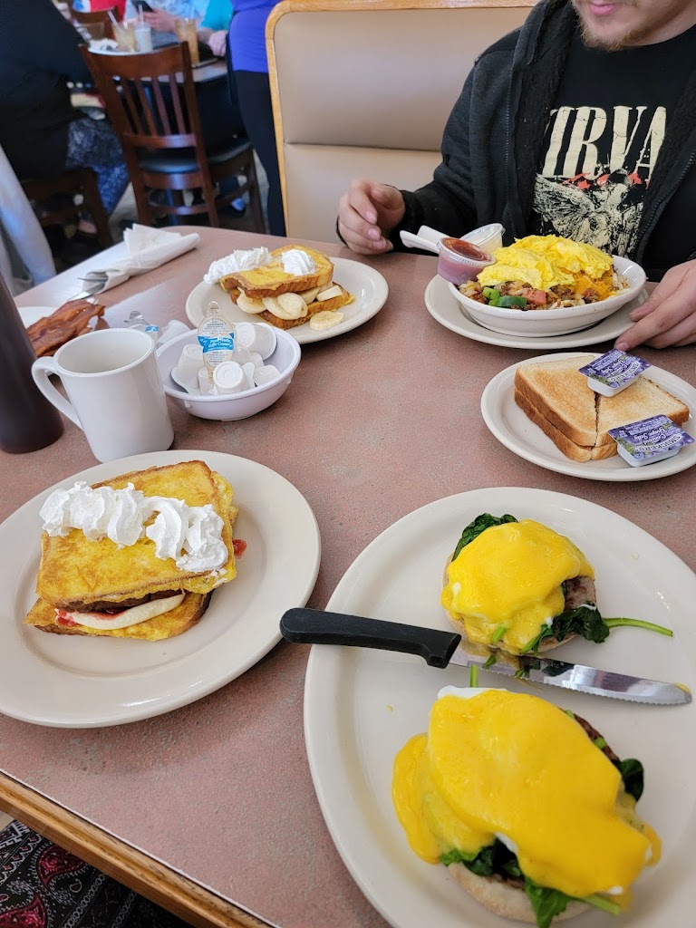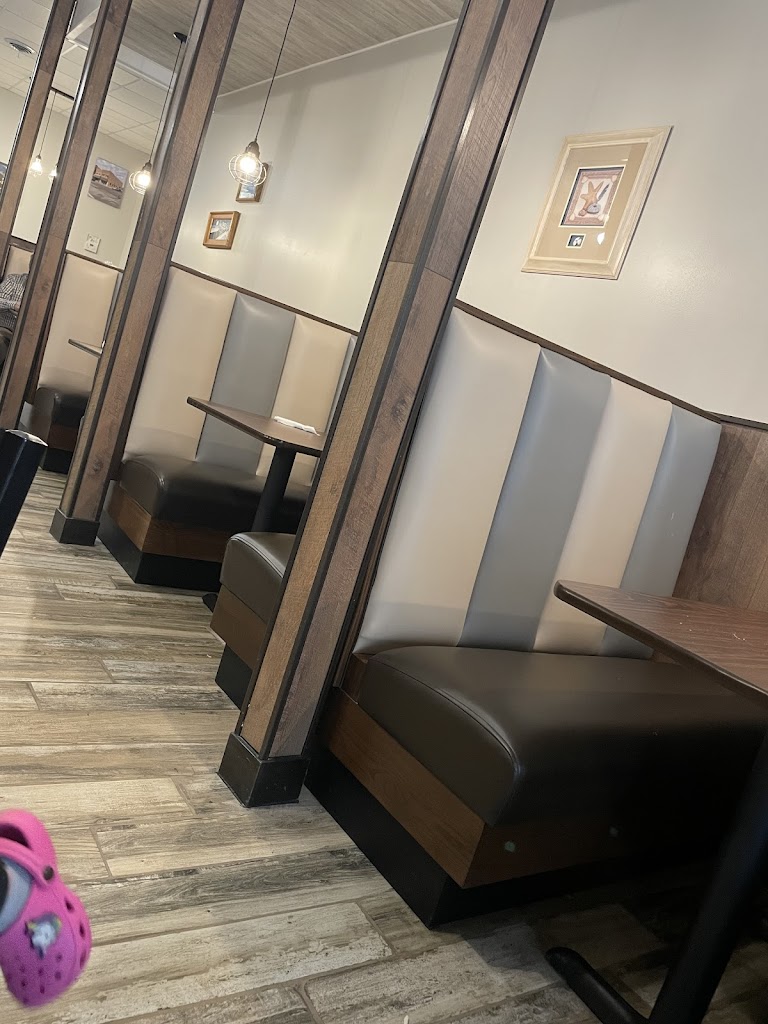 My lady, my bestie and I visited here today for breakfast. It was sit any where. We picked a table that wasn't wiped down yet. They wiped it down immediately. Got us our menus and drink orders right away. Then at least 20 minutes went by. I saw new customers sit down and get their orders taken shortly after being seated. I had to find a server and tell her we still needed our orders taken. That's the only reason they lost a star. My Bestie enjoyed her food. My lady, ehhh...she loved her last visit. The bill was $40 total for the 3 of us. Not bad at all!