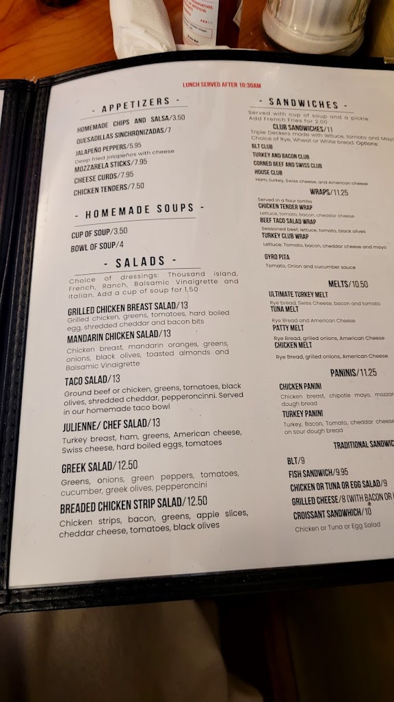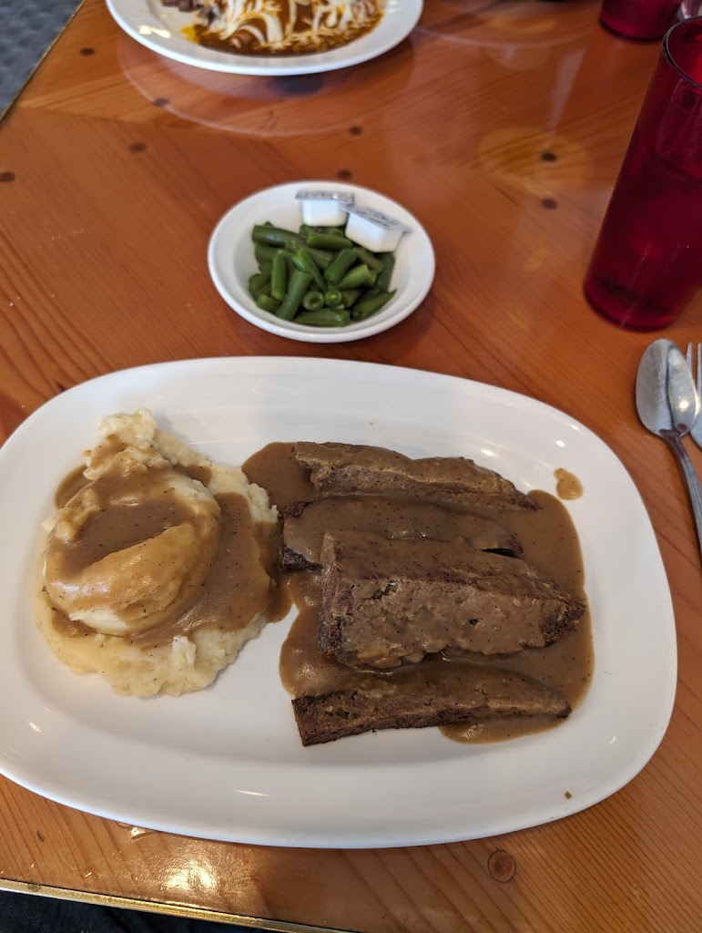 Breakfast is the only meal that's edible. I've tried lunch and dinner, and they're made for people with no taste buds. Fish fry tasteless and gummy. Burger dry. Spaghetti... noodles overcooked, meat sauce flavorless. Side salad... lettuce so wet from washing dressing wouldn't adhere. Tonight I dm spent $19 for a root beer and a side salad I only ate half of because the spaghetti was unpalatable. I'm done with this place